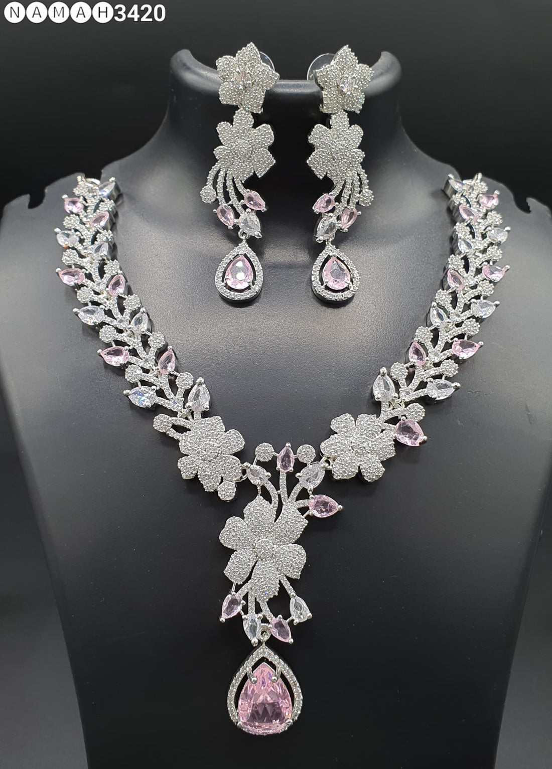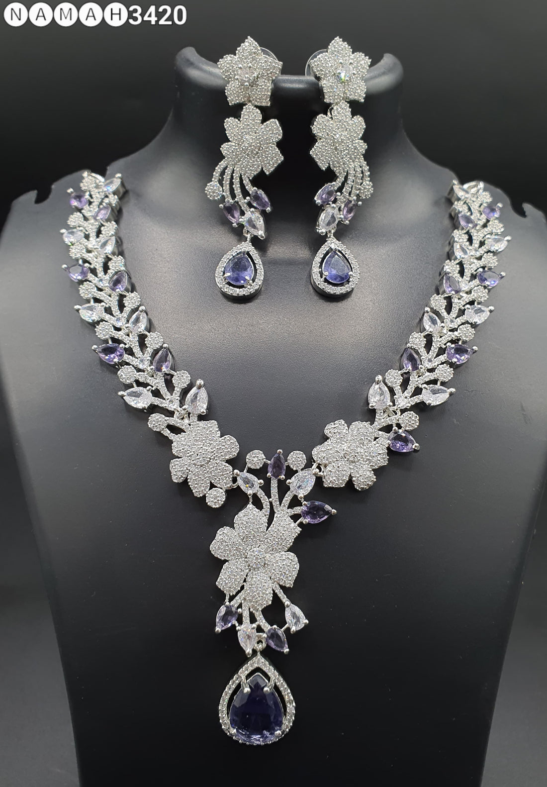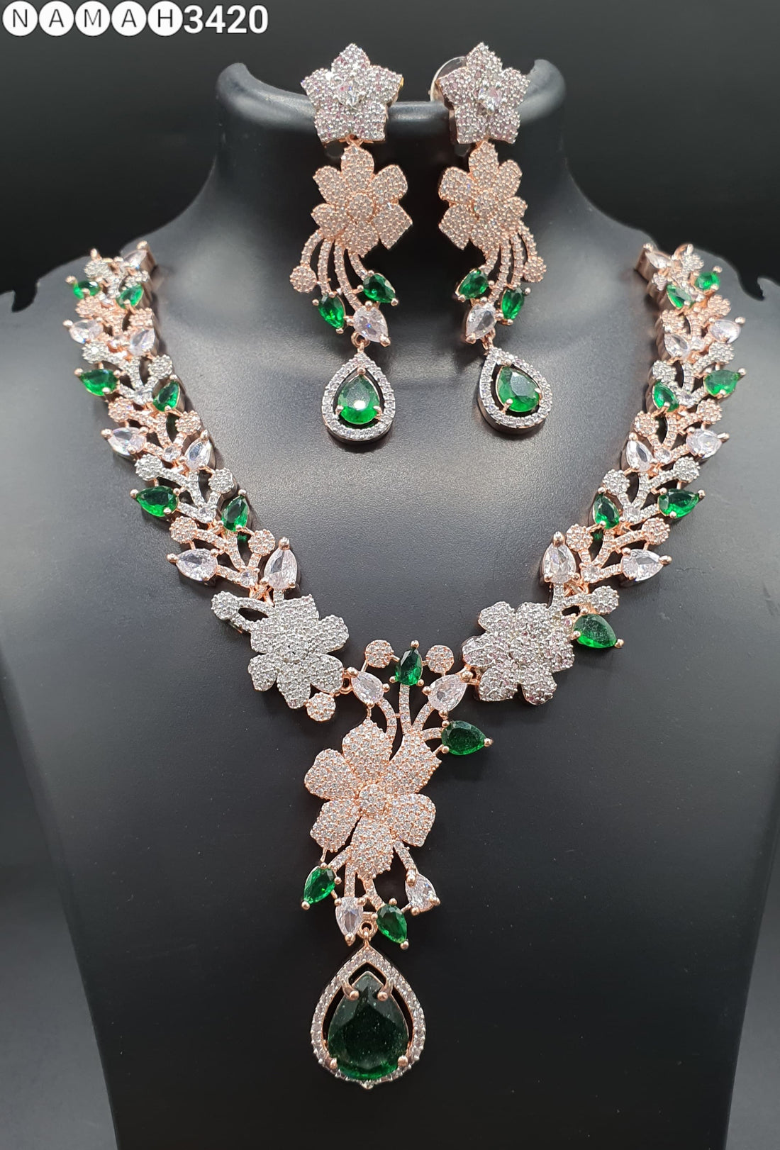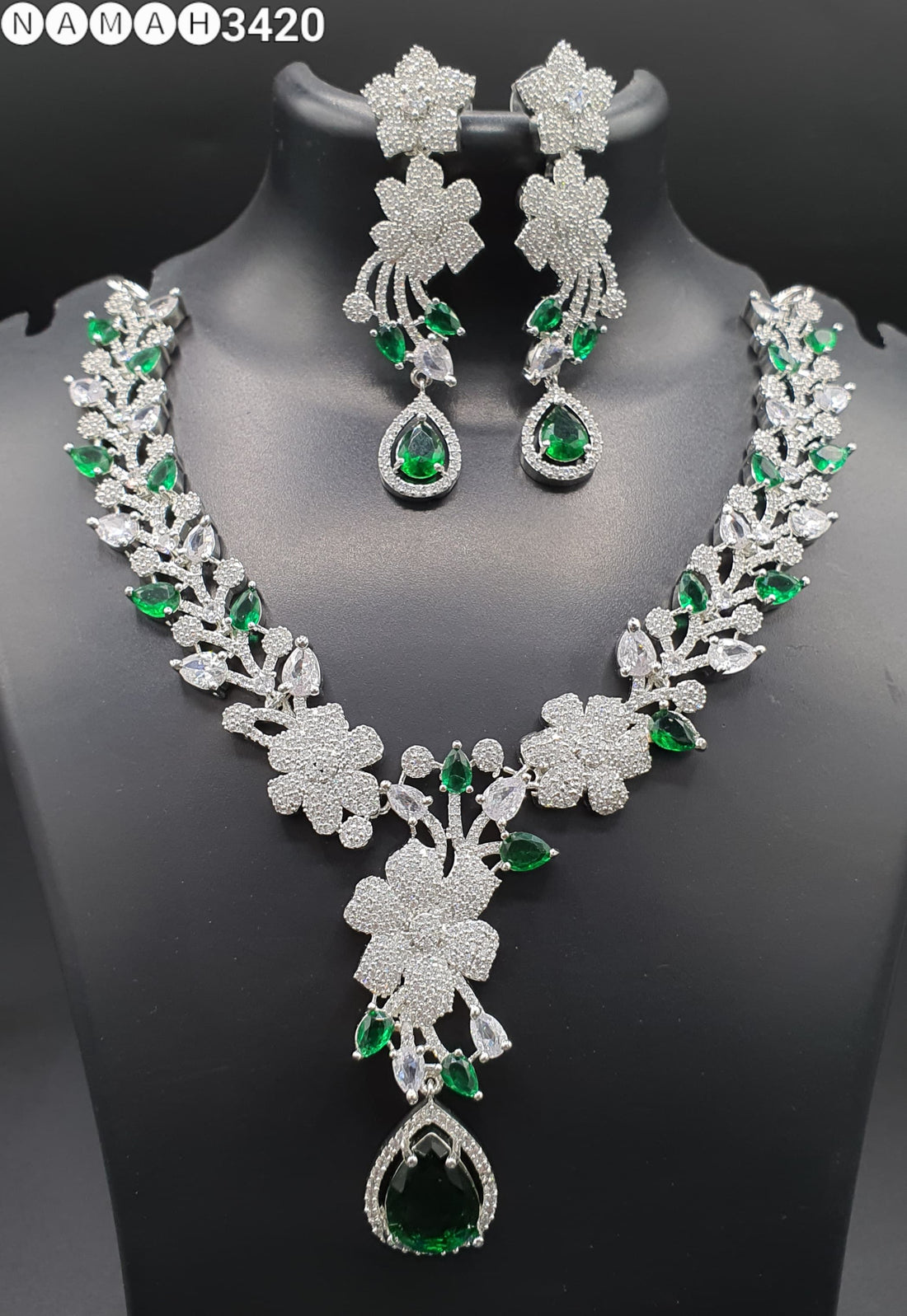Beautiful American Diamond Antique Stone Necklace with Earrings Jewellery