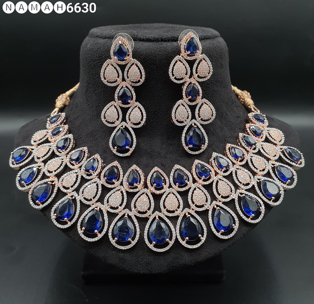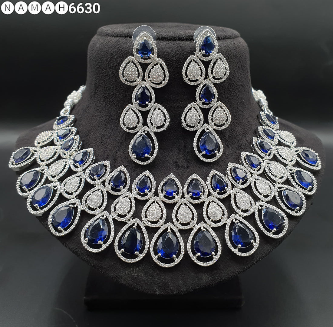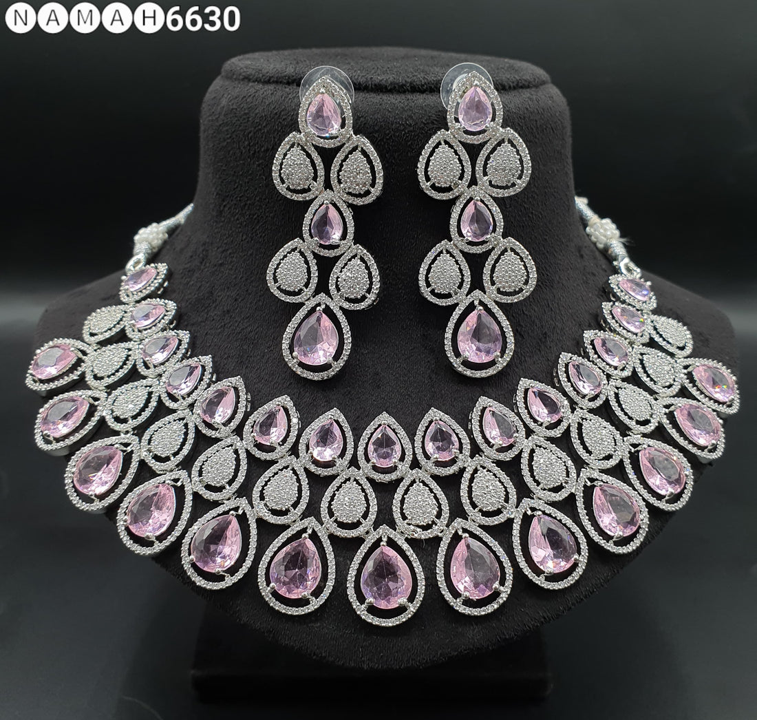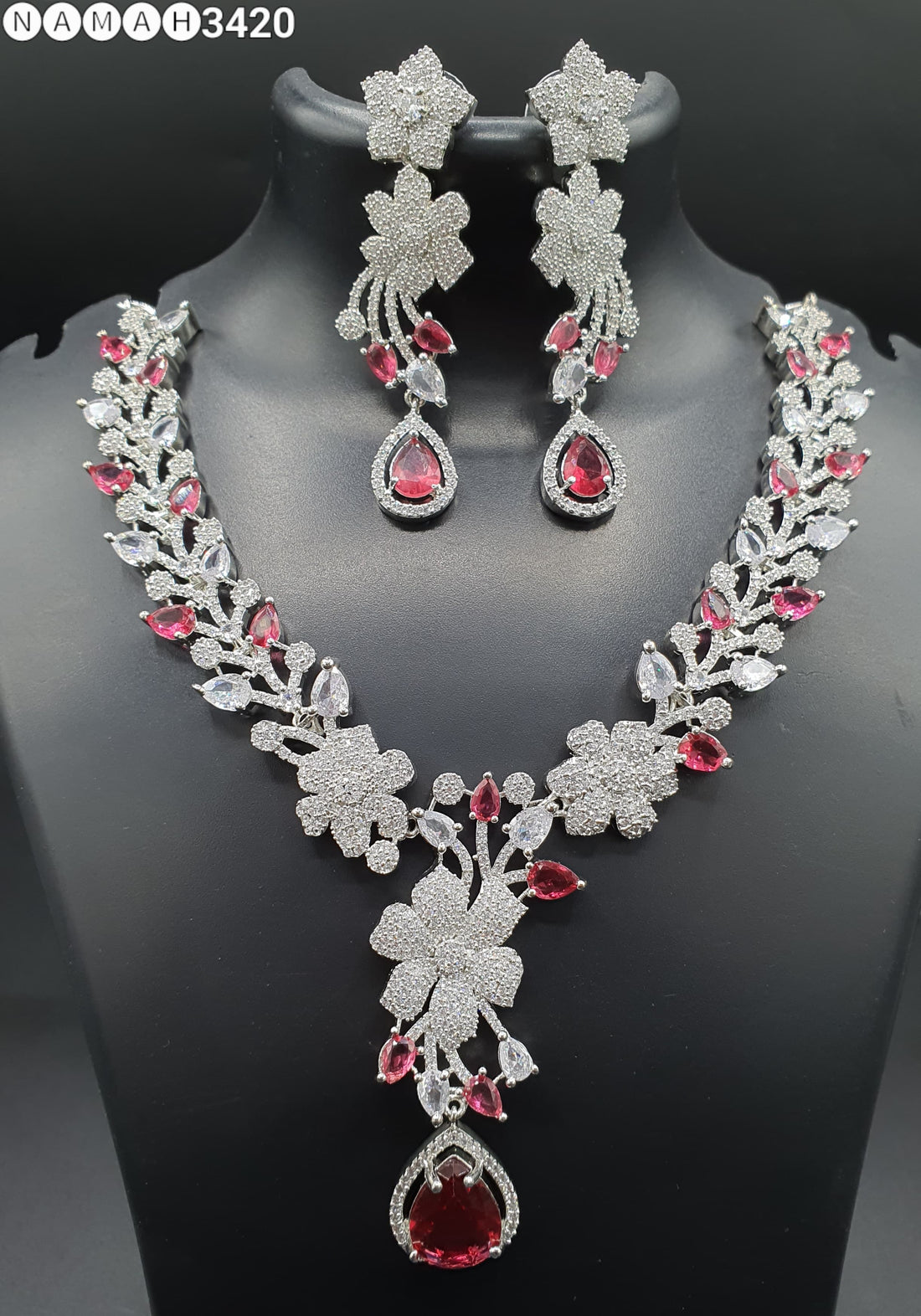 Beautiful American Diamond Antique Stone Necklace with Earrings Jewellery