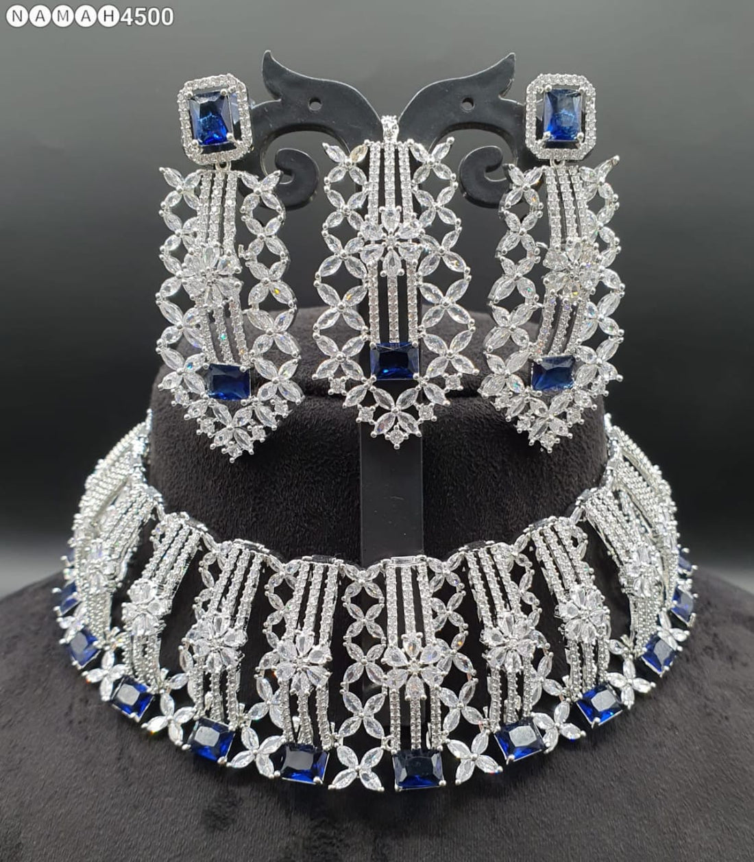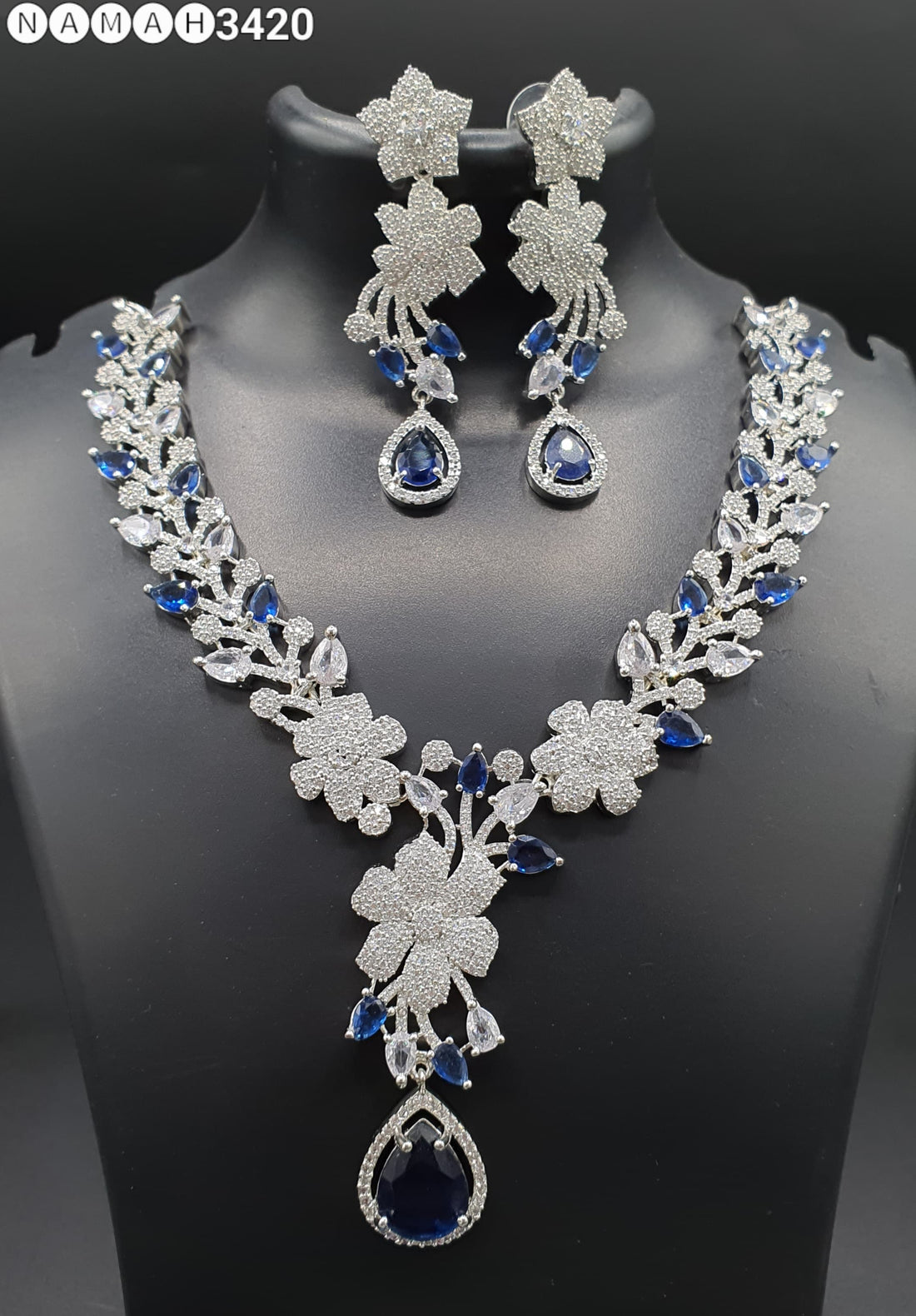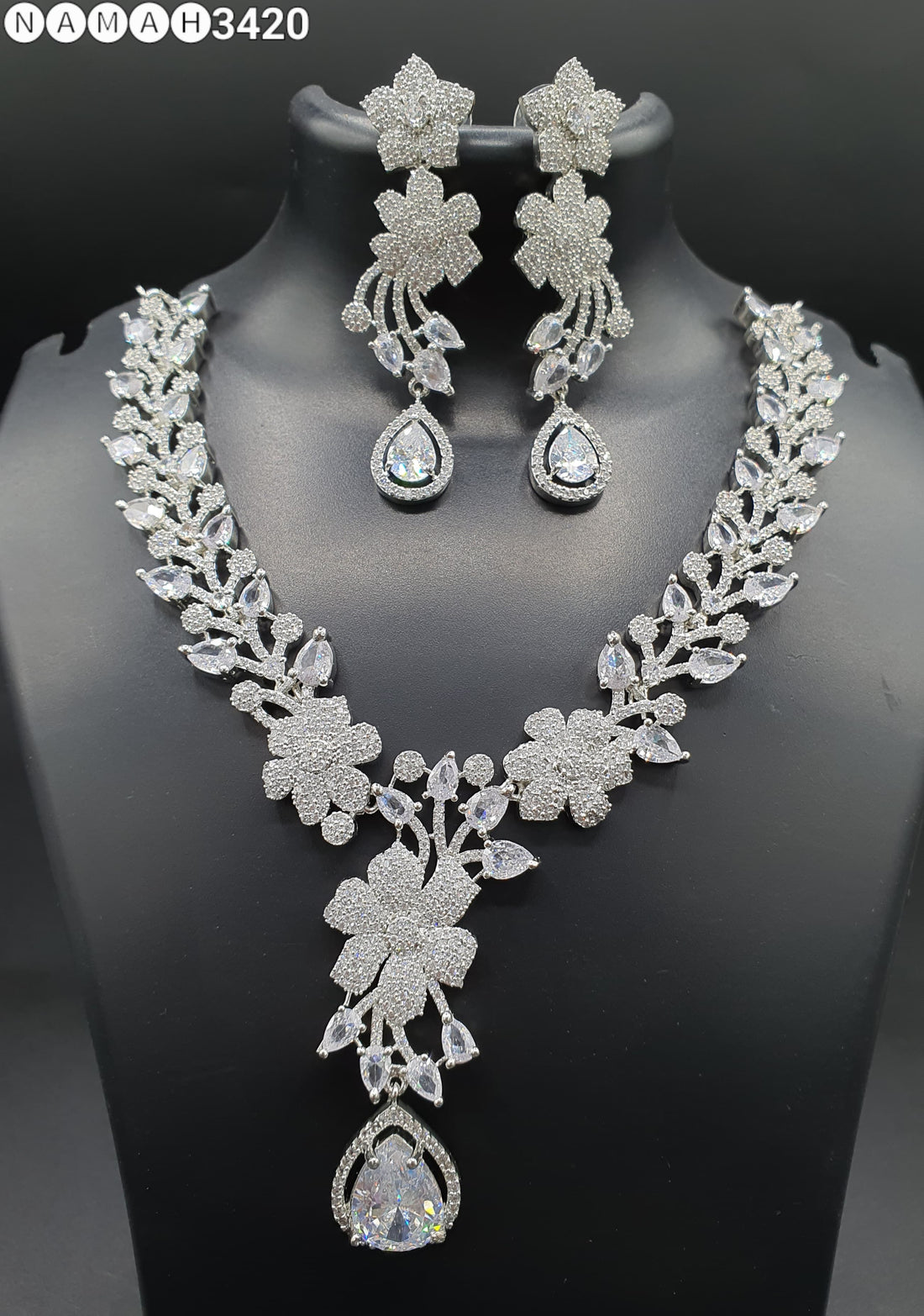 Beautiful American Diamond Antique Stone Necklace with Earrings Jewellery