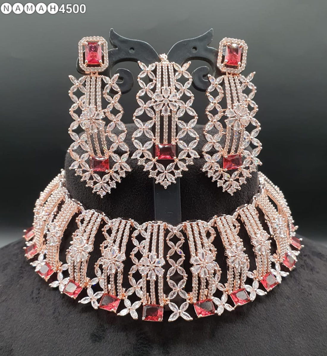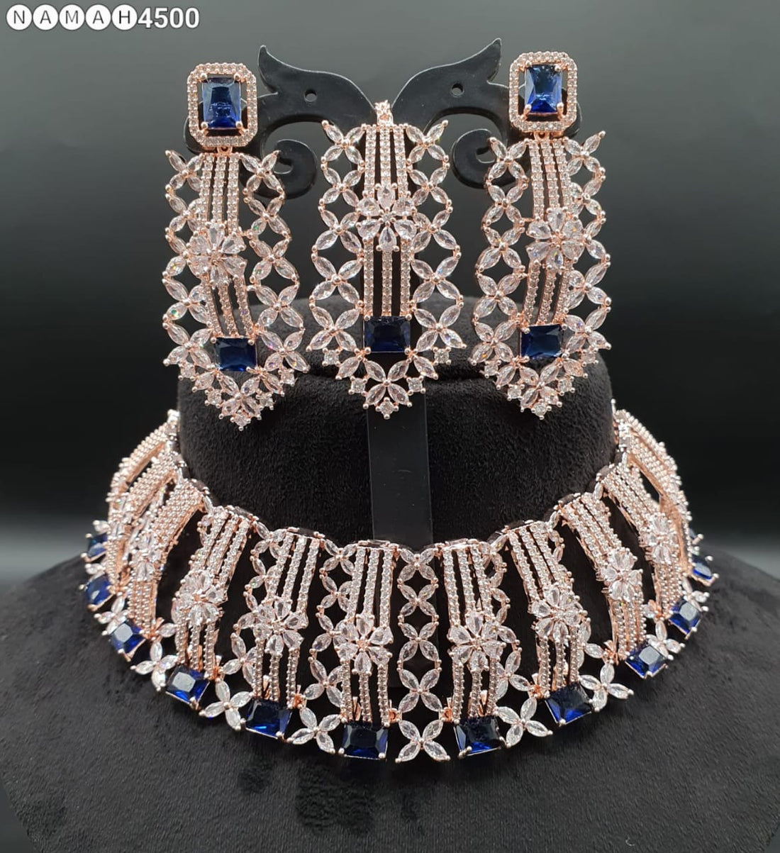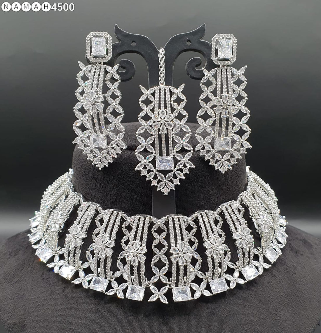Beautiful American Diamond Antique Stone Necklace with Earrings Jewellery