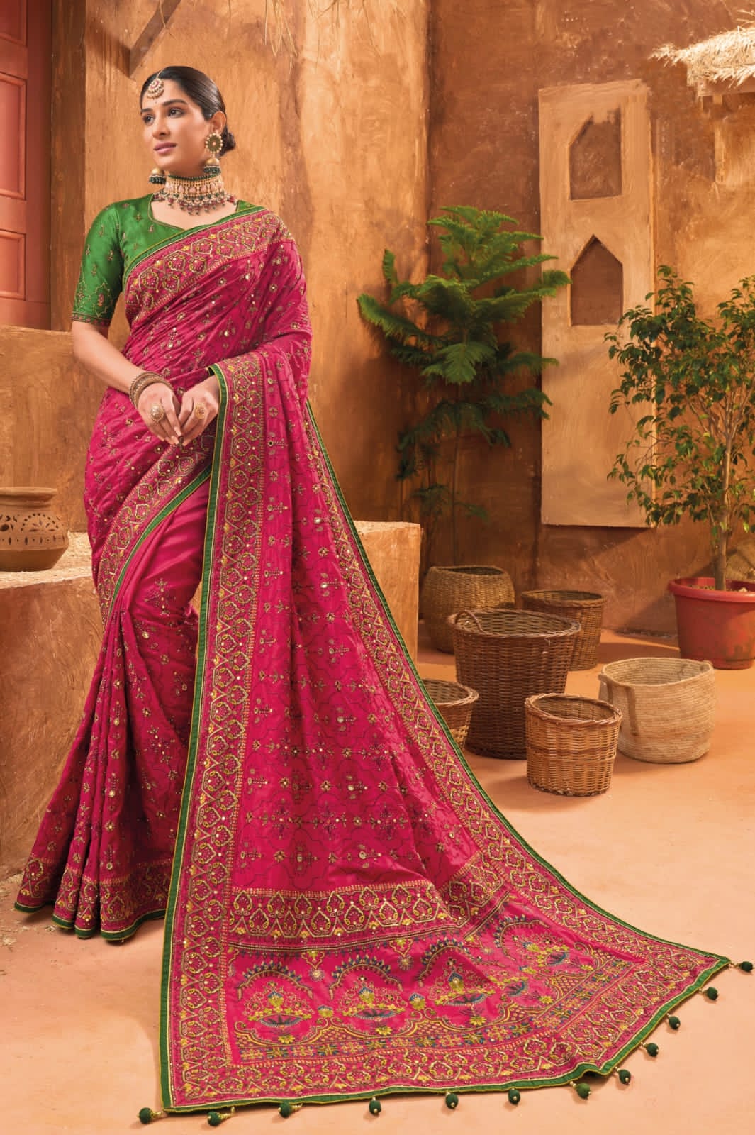 Bridal Wedding Pink Kacchi Work Banarasi Silk Saree