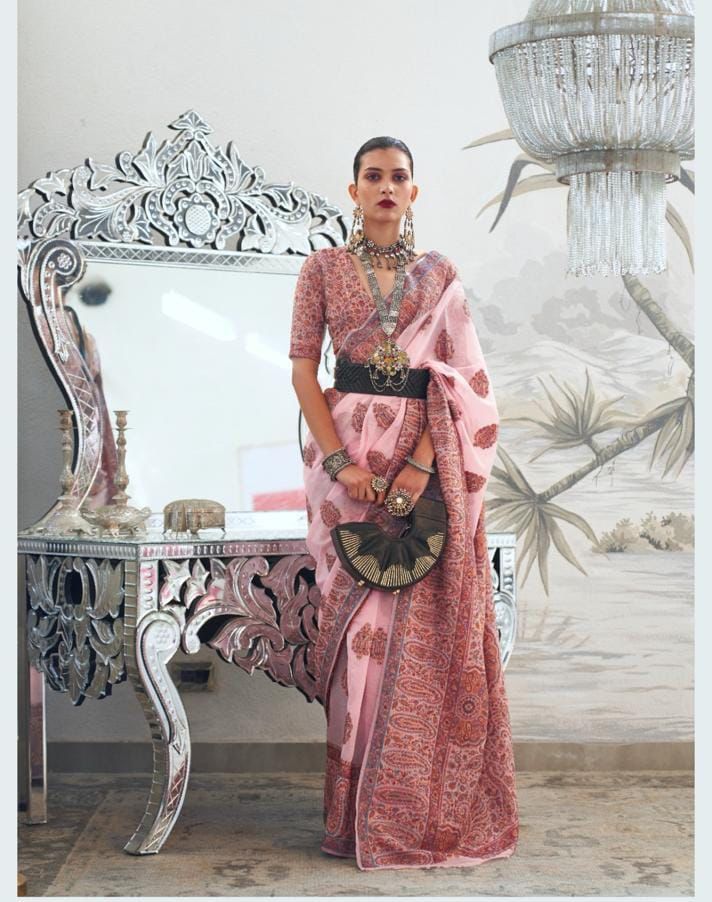 Party Wear Designer Kqaalib Silk Heavy Kashmiri Handloom Saree