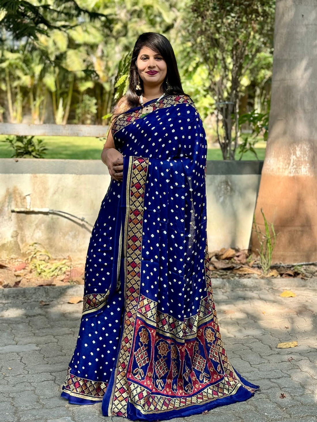 Beautiful Designer Art Silk Chokda Style Bandhani Saree