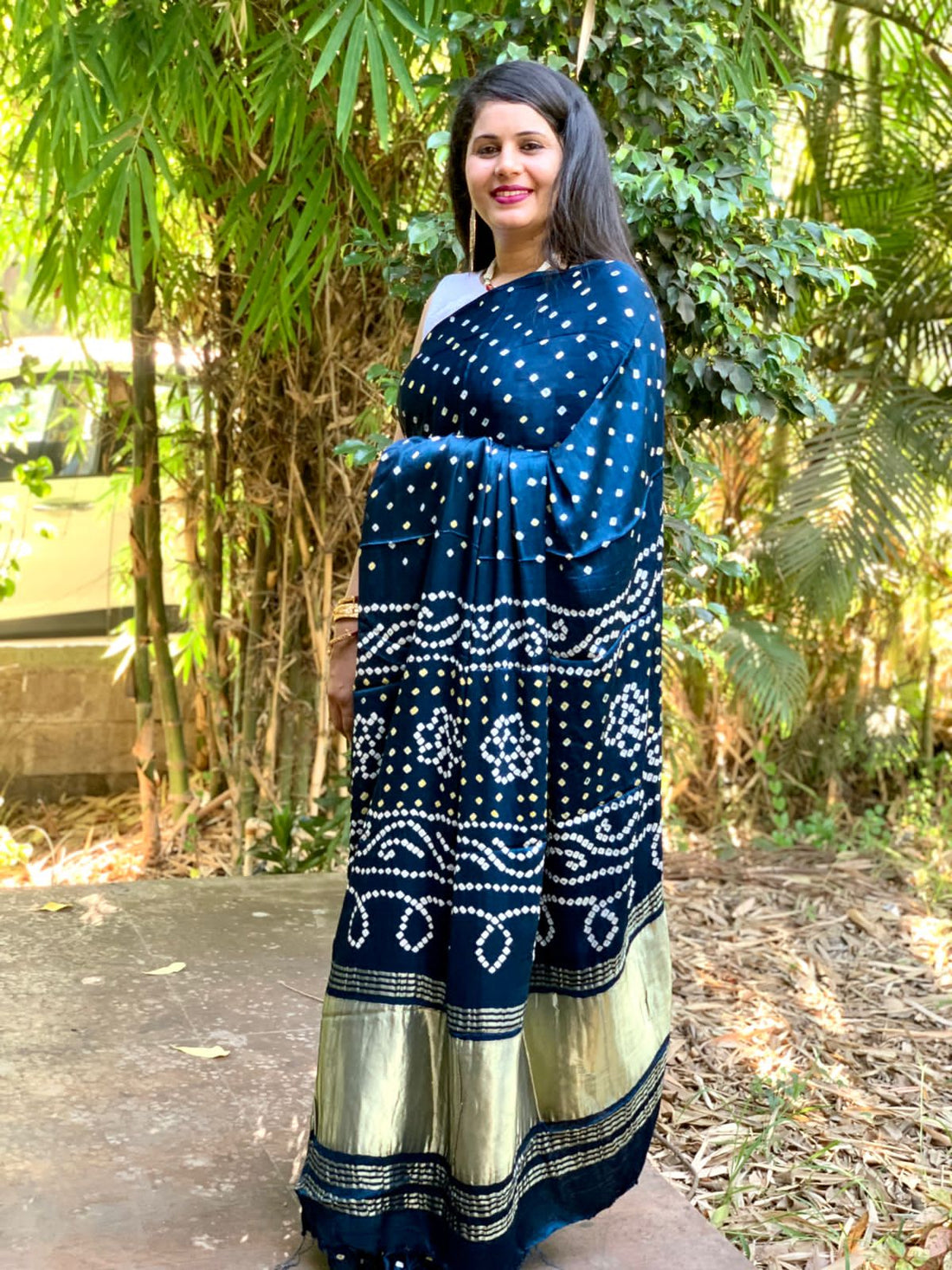 Pavitra Bandhej Pure Wark Gaji Saree BandhejNew Pavitra Pure Gujji Wark BandhejΒ Tulshi Saree Length-6.30...
