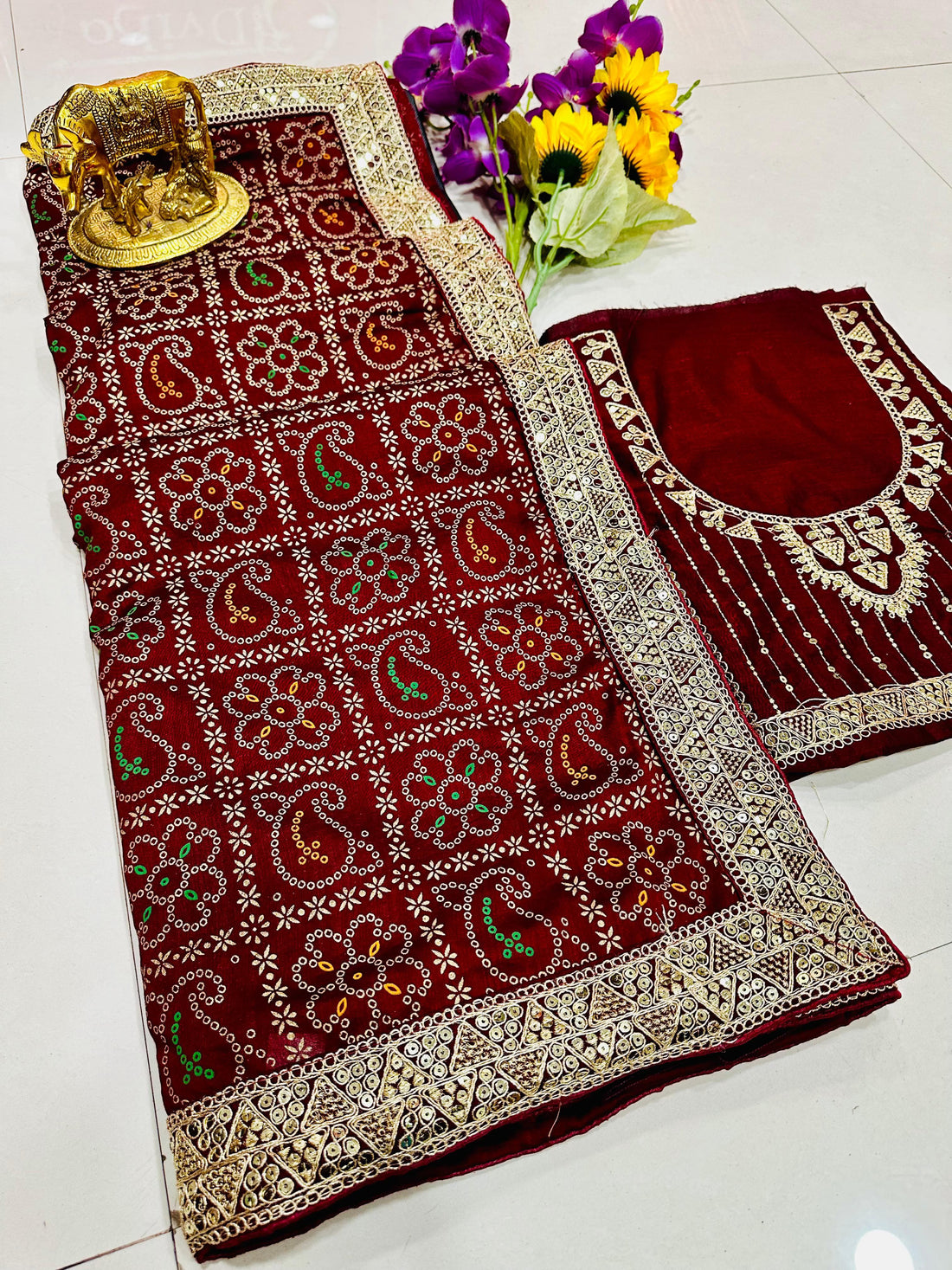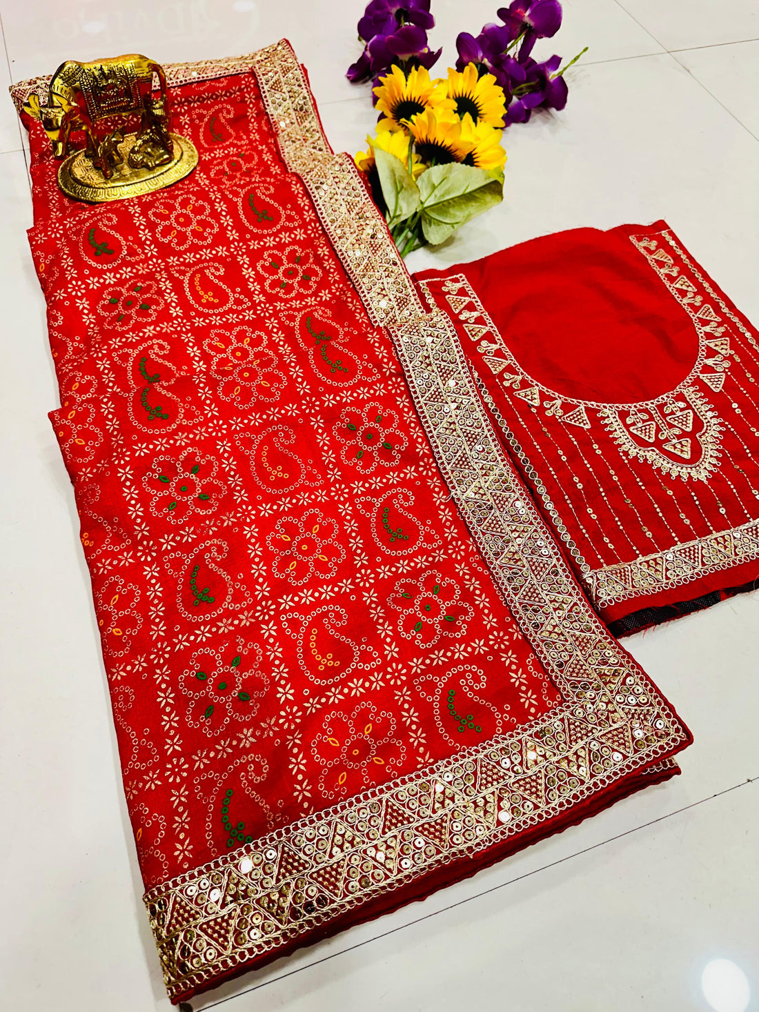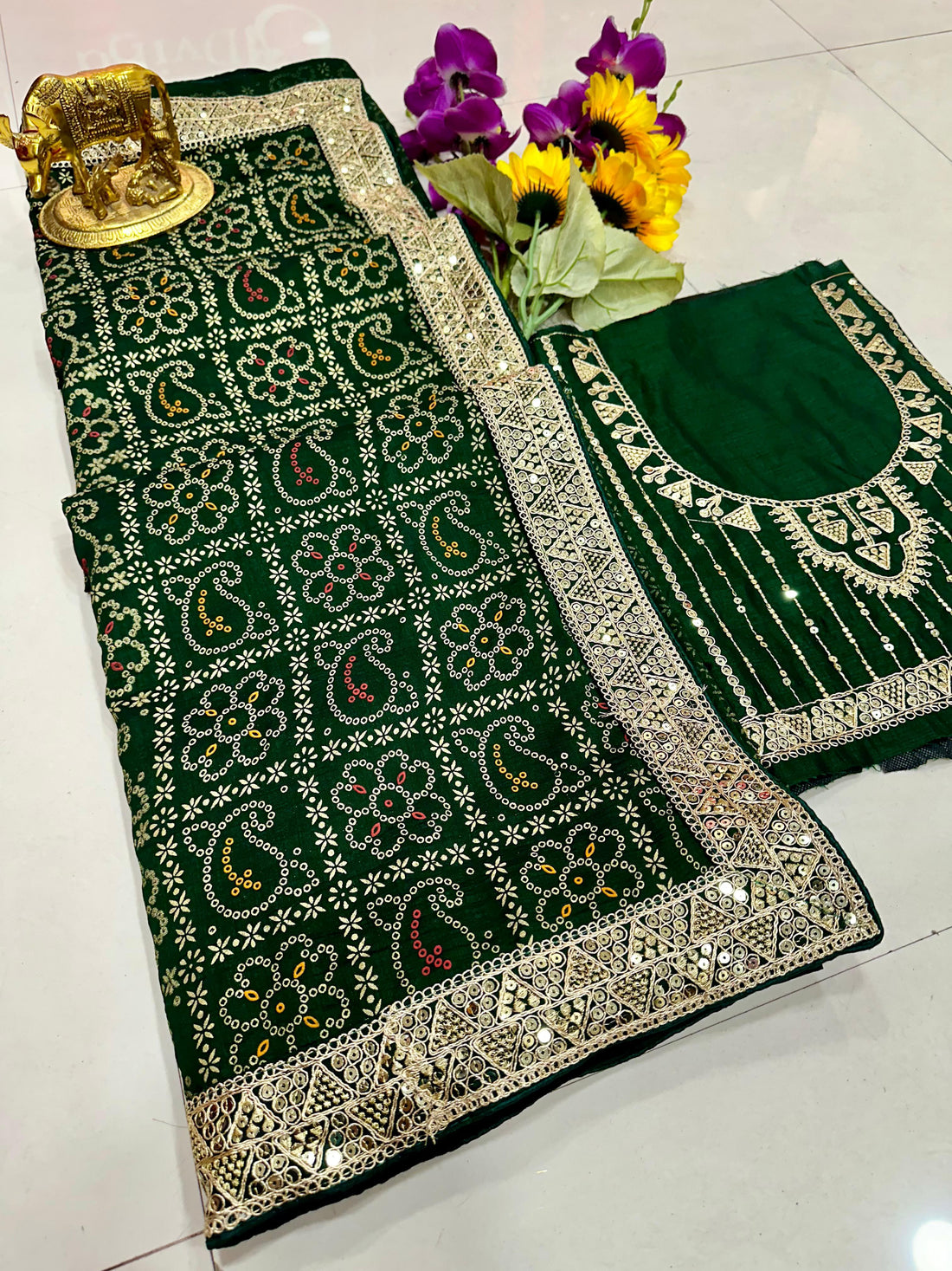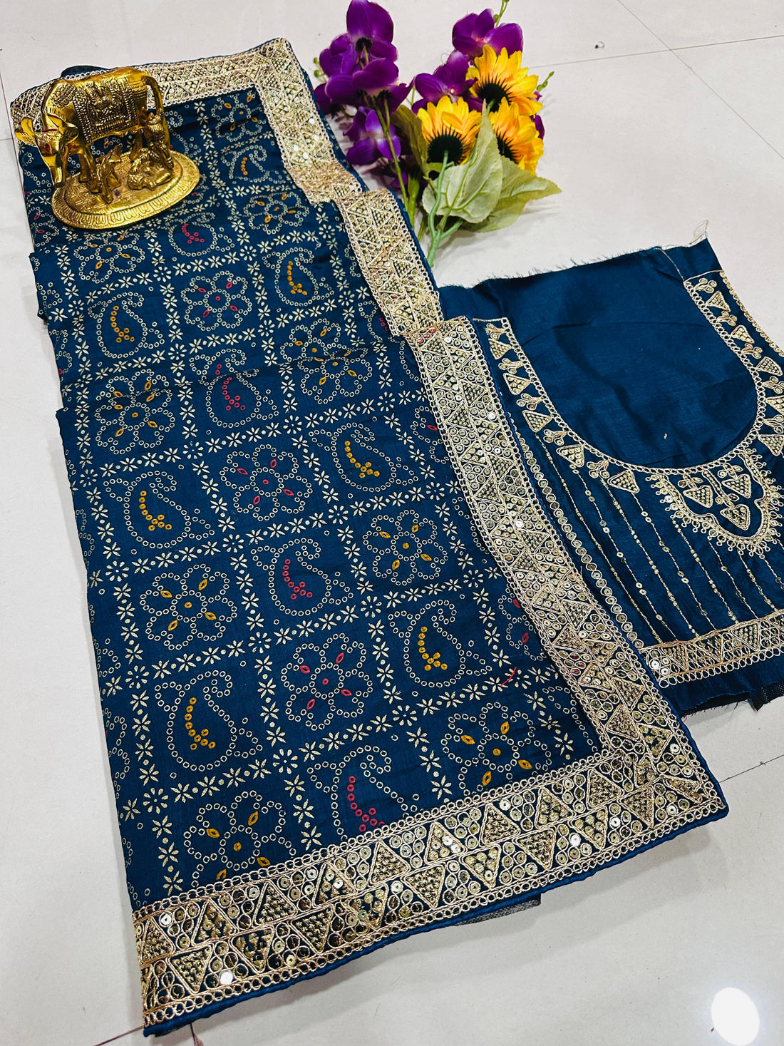 Beautiful Designer Tulshi Ajrakh Lagdi Patta Pure Gajji Soft Silk Saree