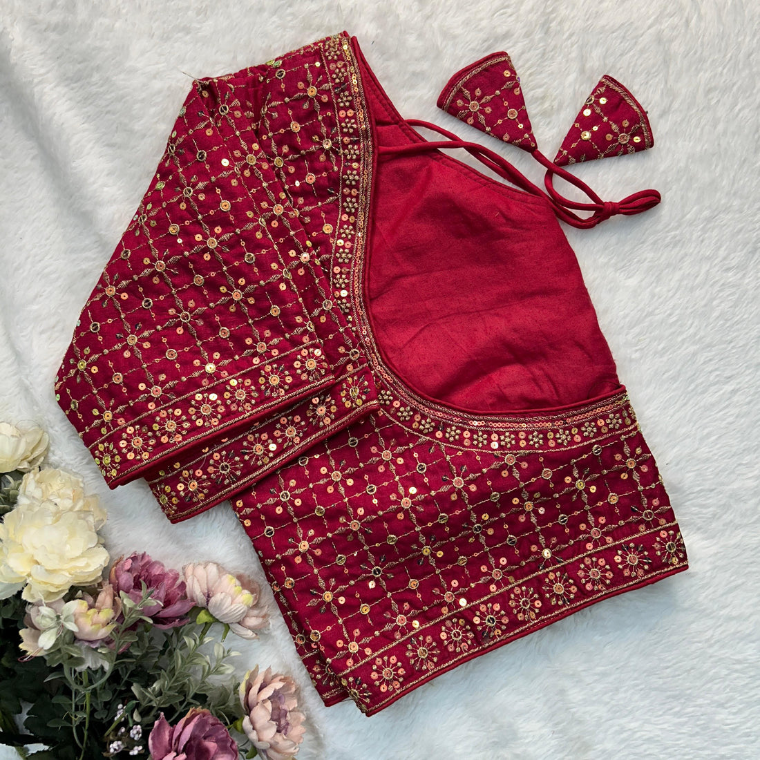 Beautiful Designer Readymade Heavy Vichitra Silk Big Size Blouse