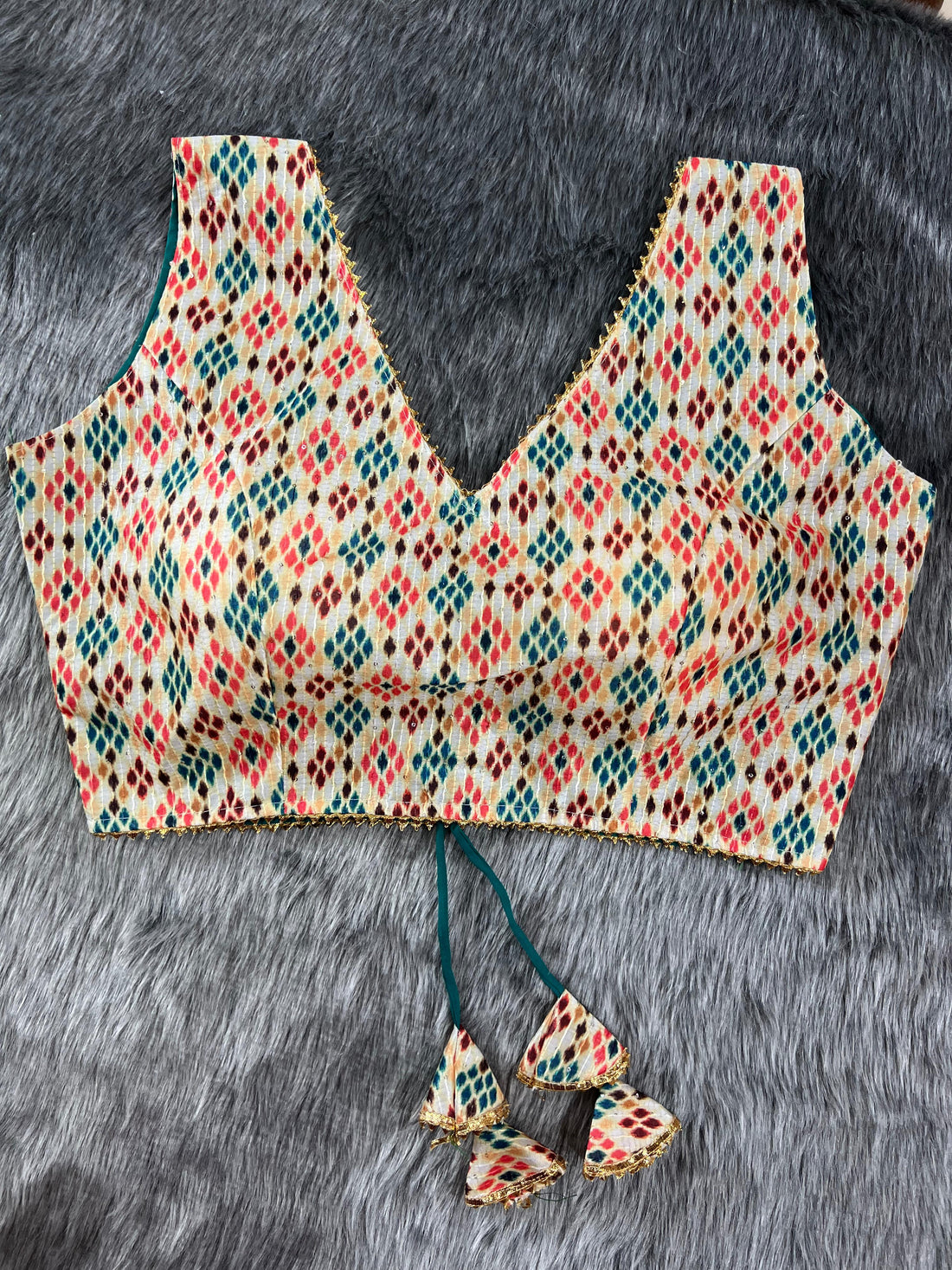 Designer Party Wear Digital Print Crochet Blouse