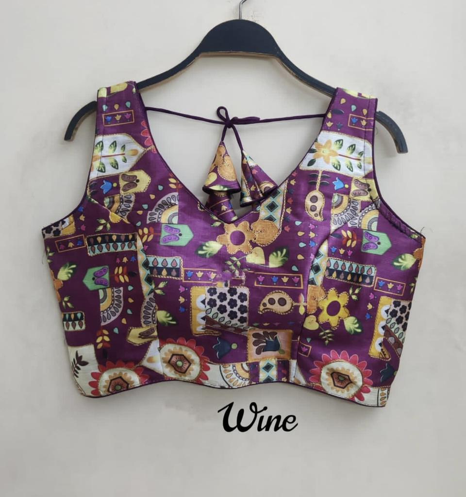 Party Wear Designer Digital Print Raw Silk With Codding Work Blouse