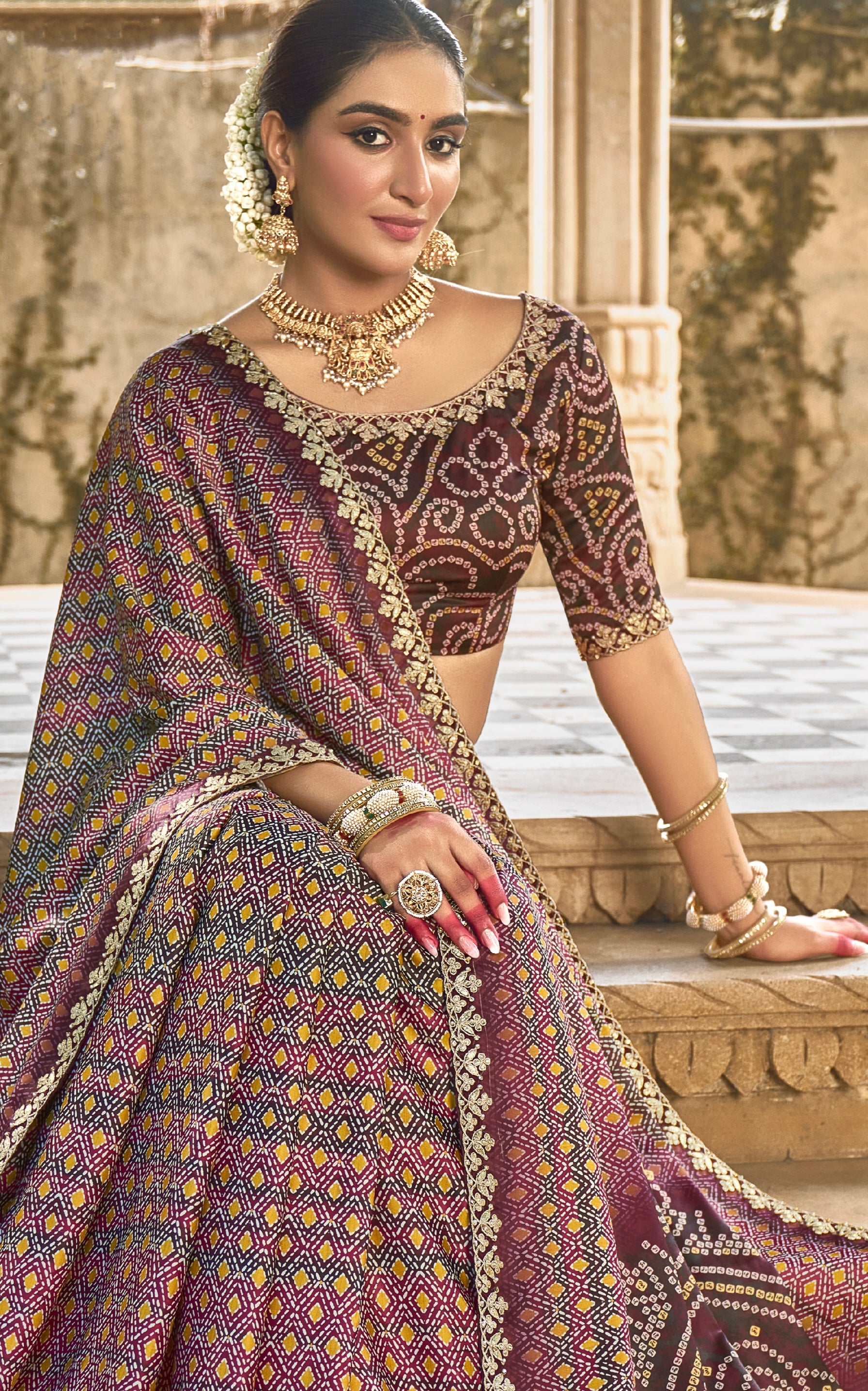 Maroon Gajji Silk Saree with Foil and Handwork