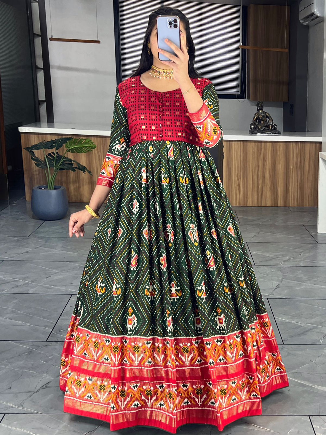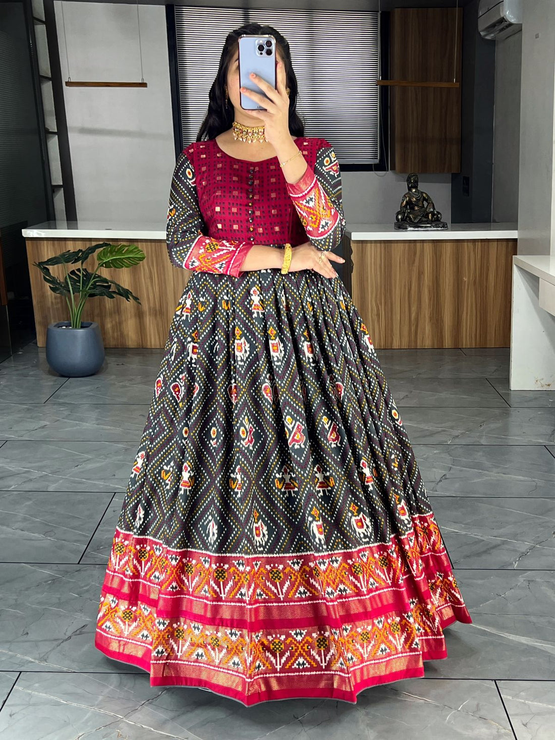 Beautiful Designer Soft Dola Silk Patola Print Party Wear Gown