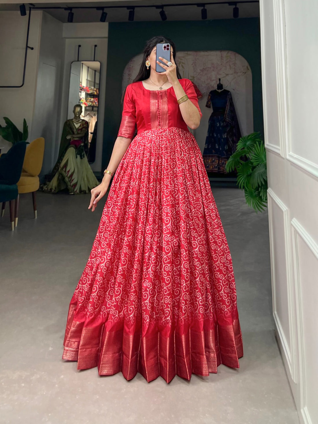 Beautiful Designer Party Wear Printed Dola Silk Gwon