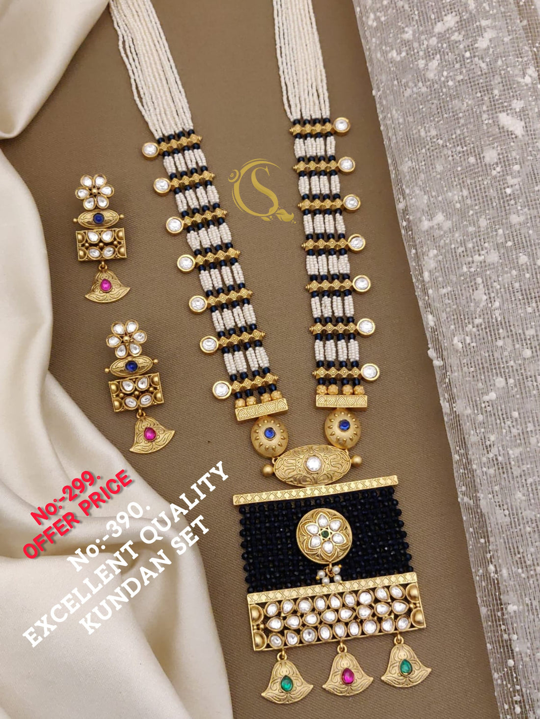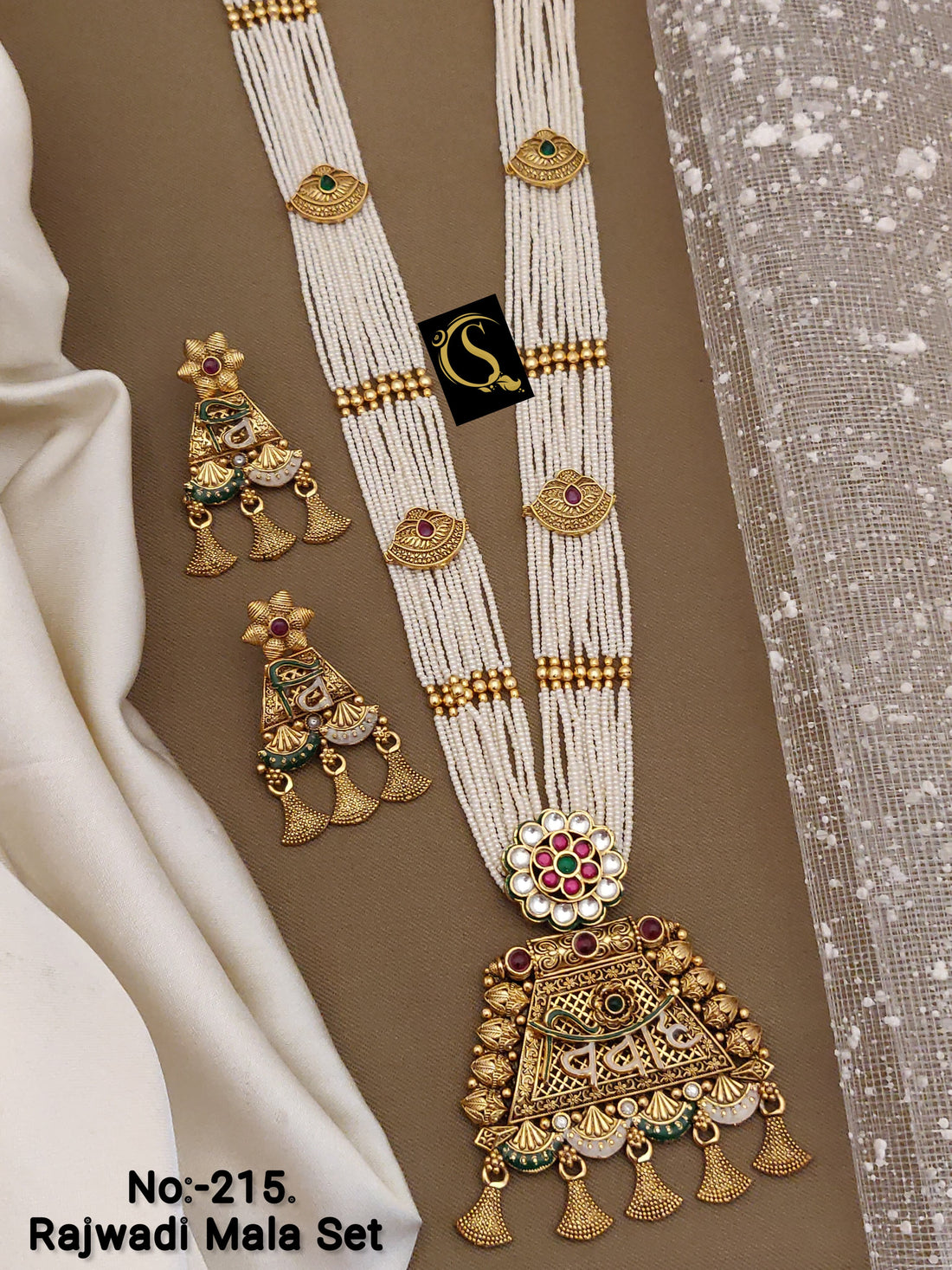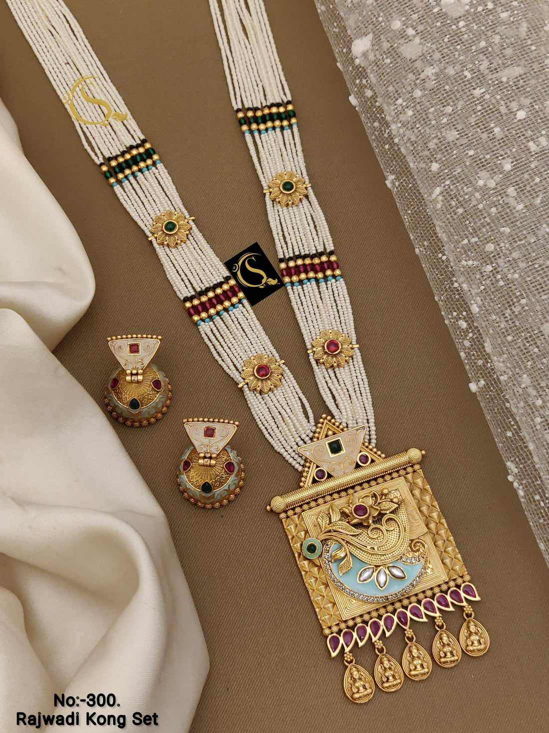 Beautiful Rajwadi Antique Long Necklace with Earrings Jewellery