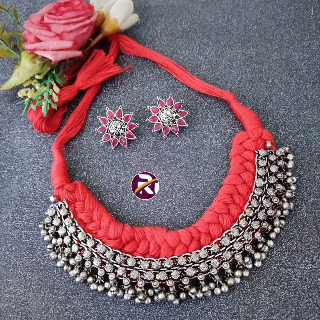 Beautiful Designer Premium Quality Ghungroo Thread Choker Set with Stone Earrings
