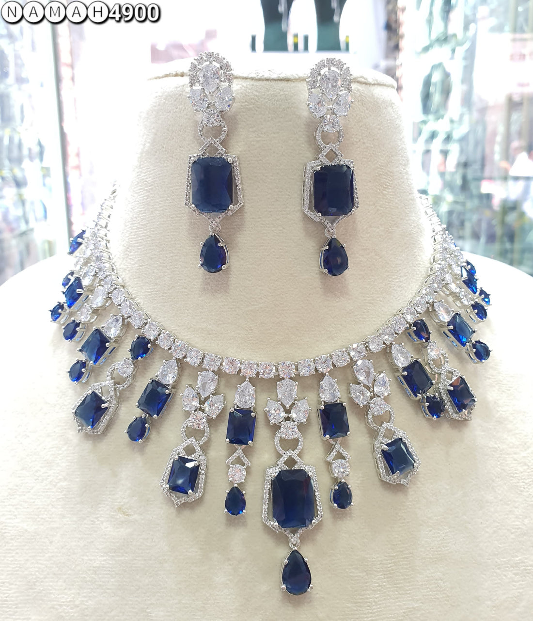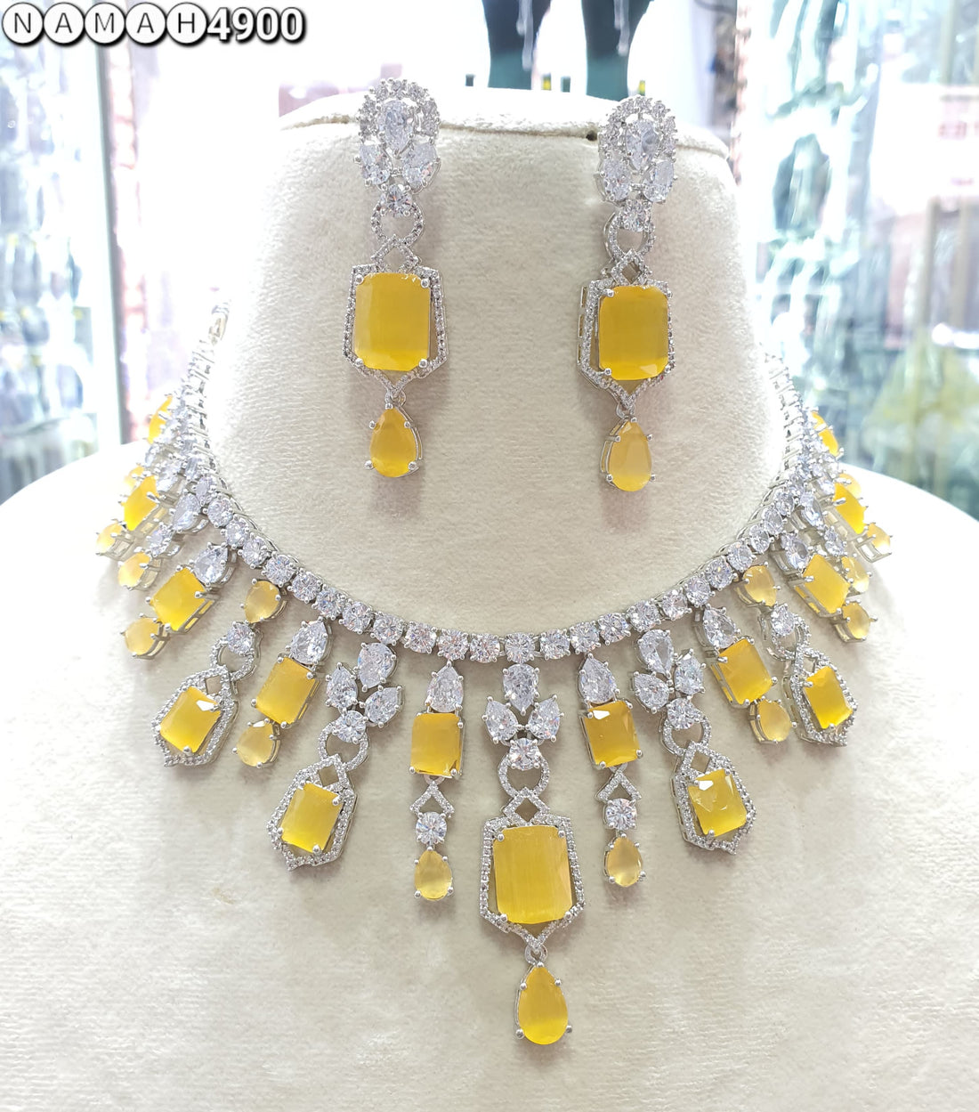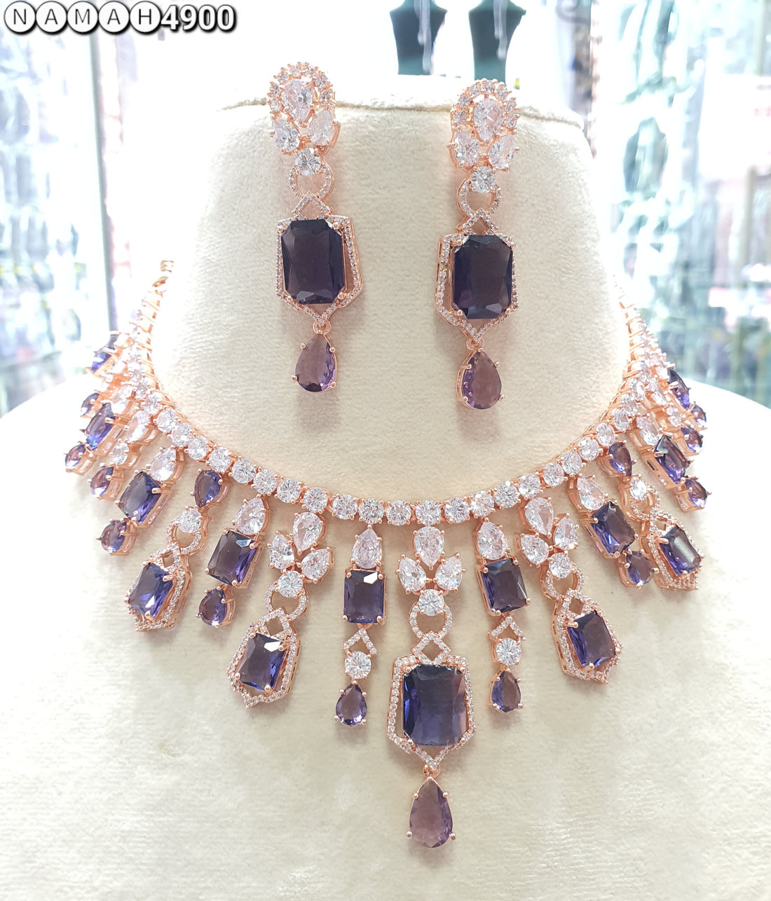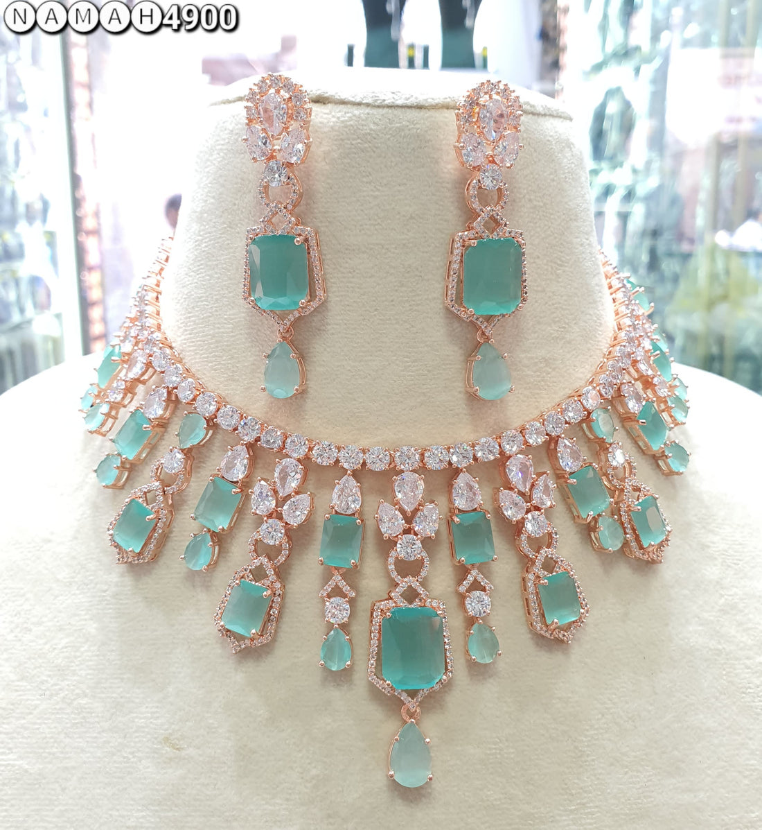 Wedding Special American Diamond Antique Stone Necklace with Earrings Jewellery