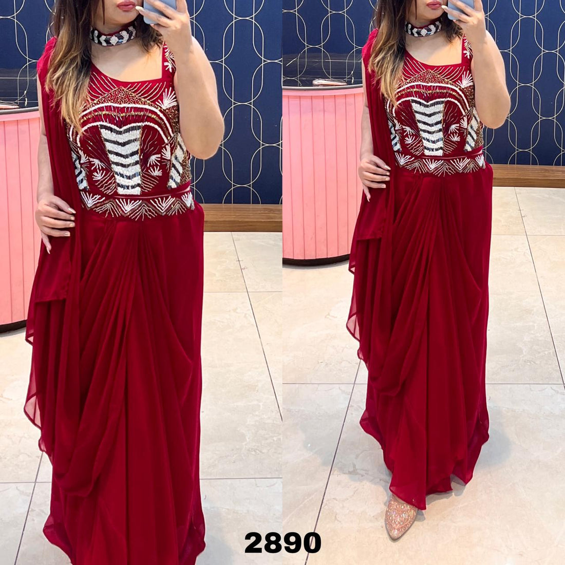 Pre Draped Saree Code 2890 Fabric DescriptionΒ Crop Top : Stitched Georgette Fabric Top with beautiful...