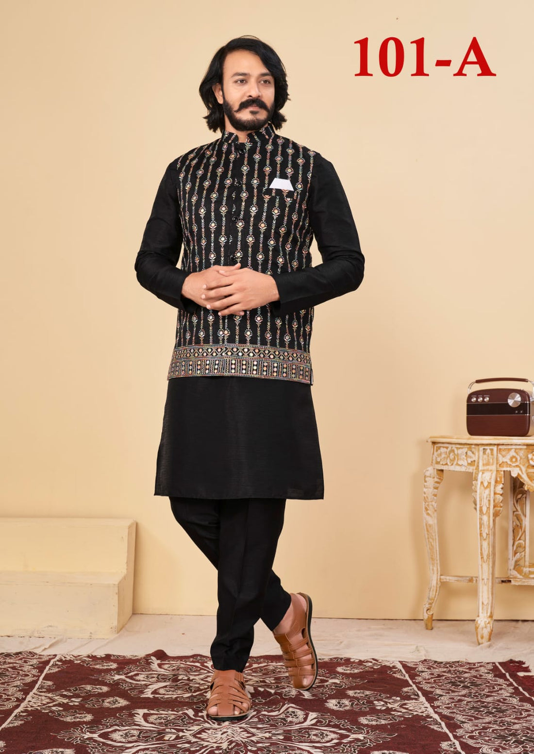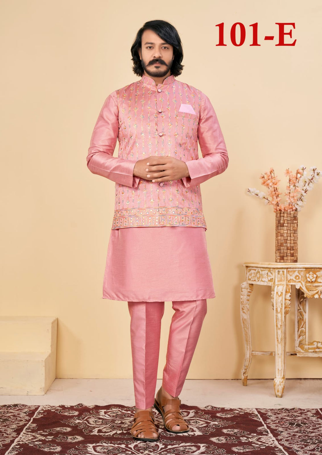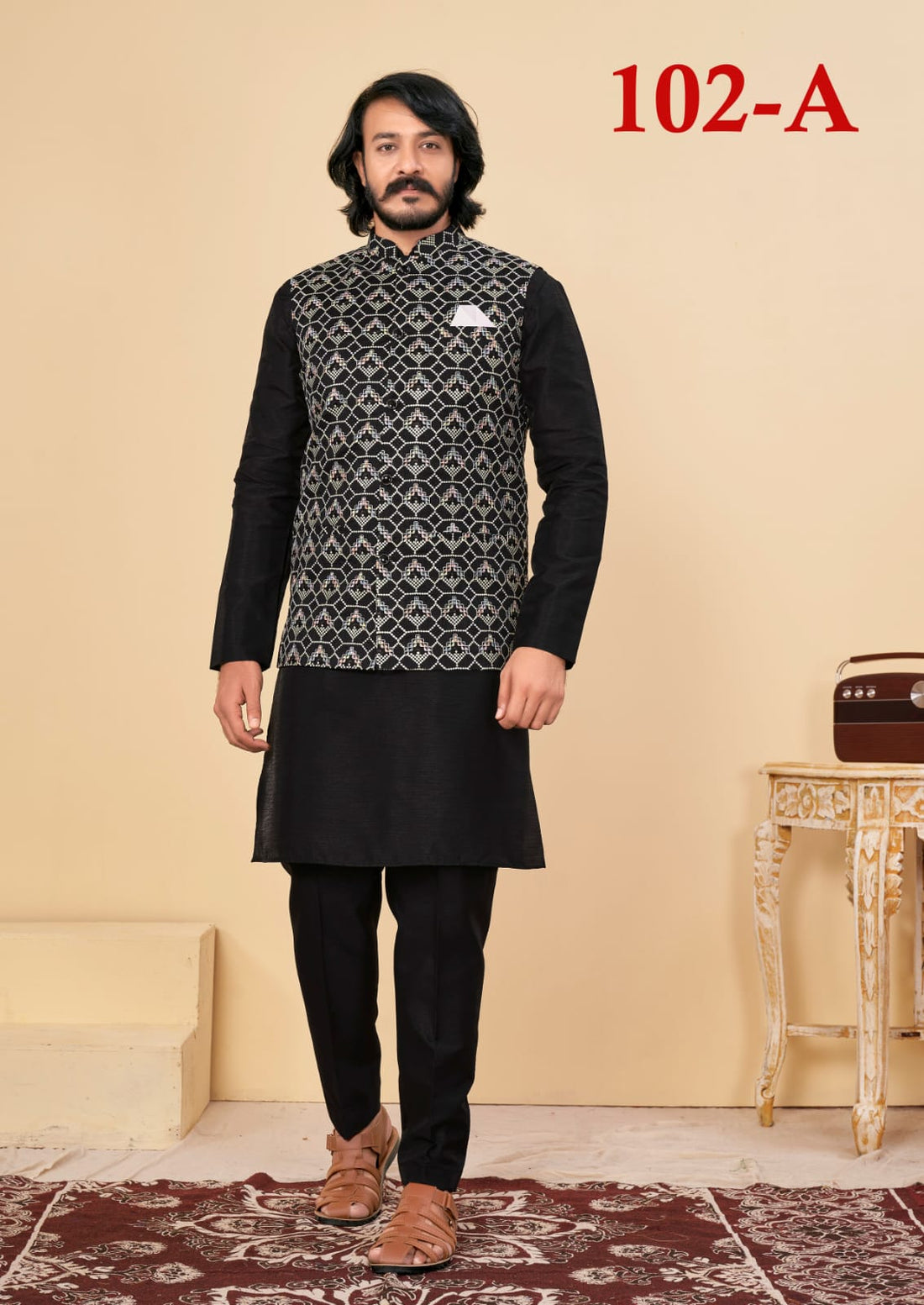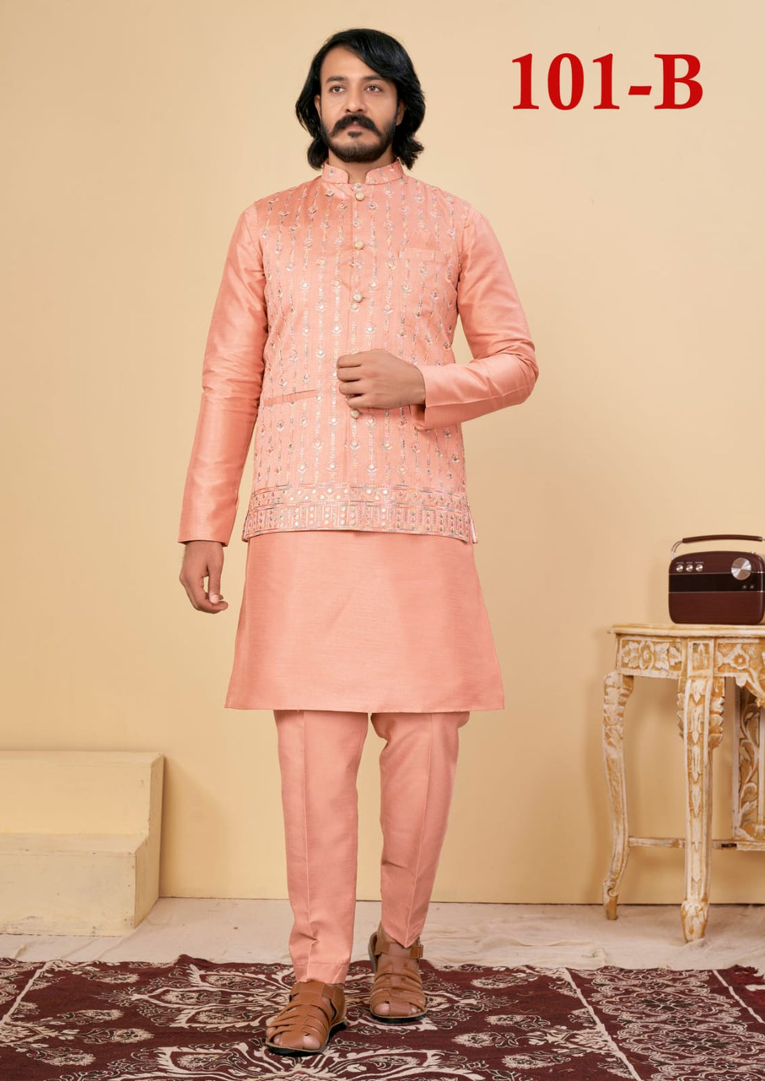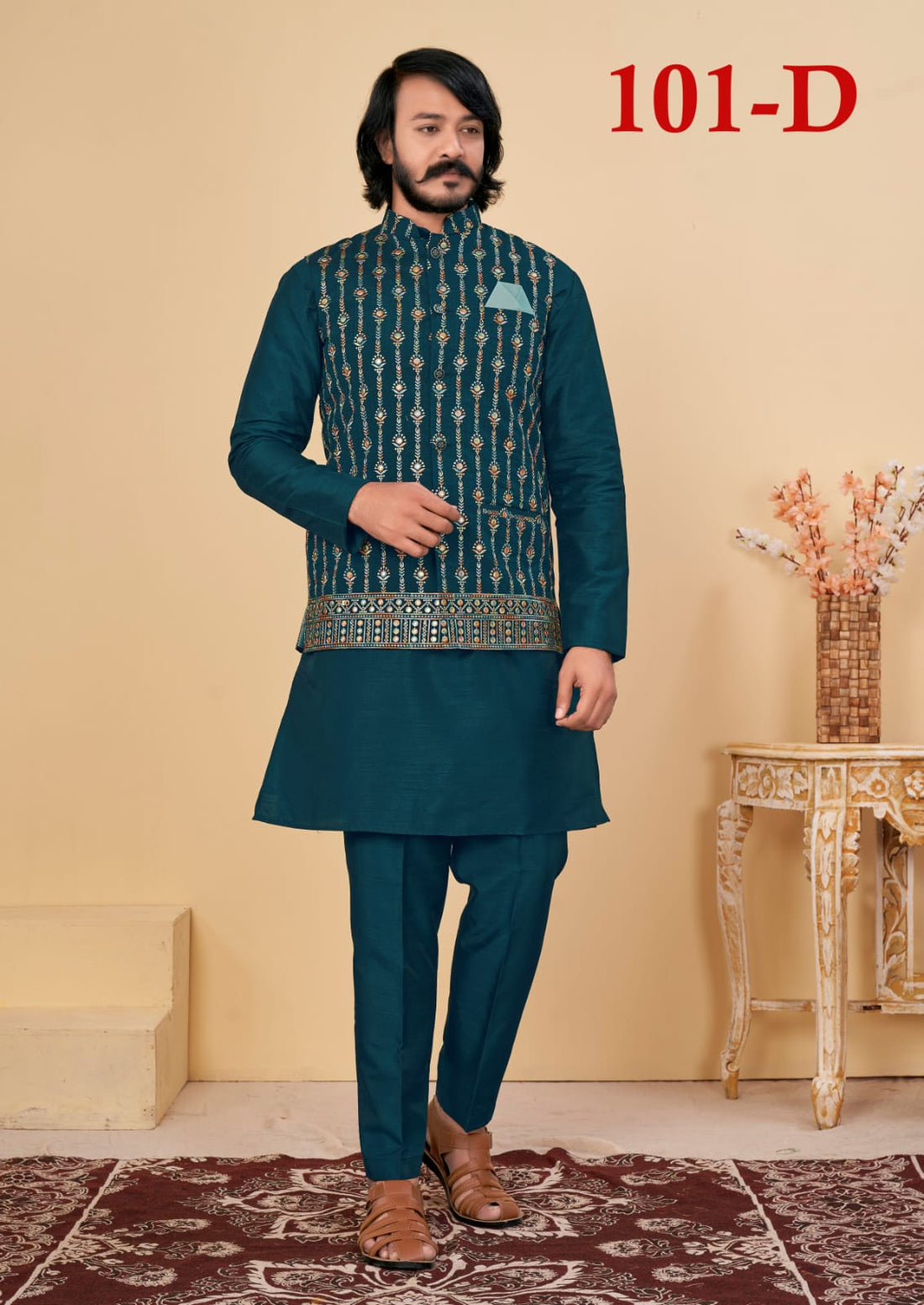 Beautiful Men's Designer Silk Kurta Payjama With Koti Jacket