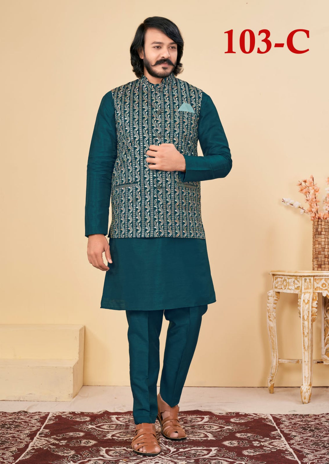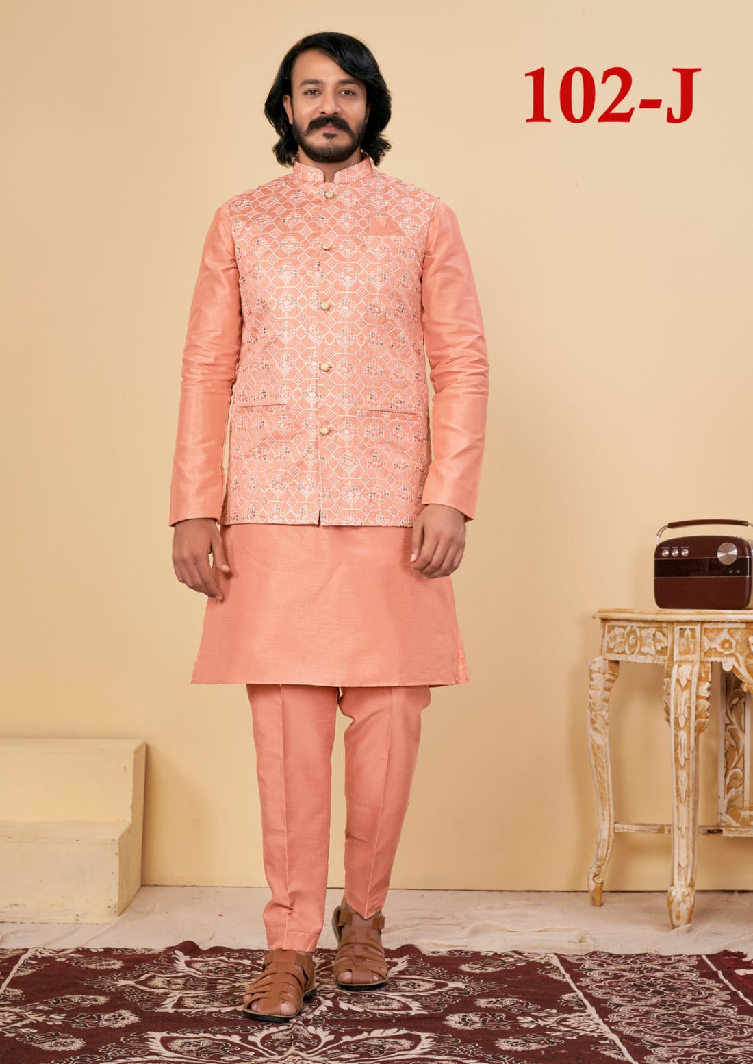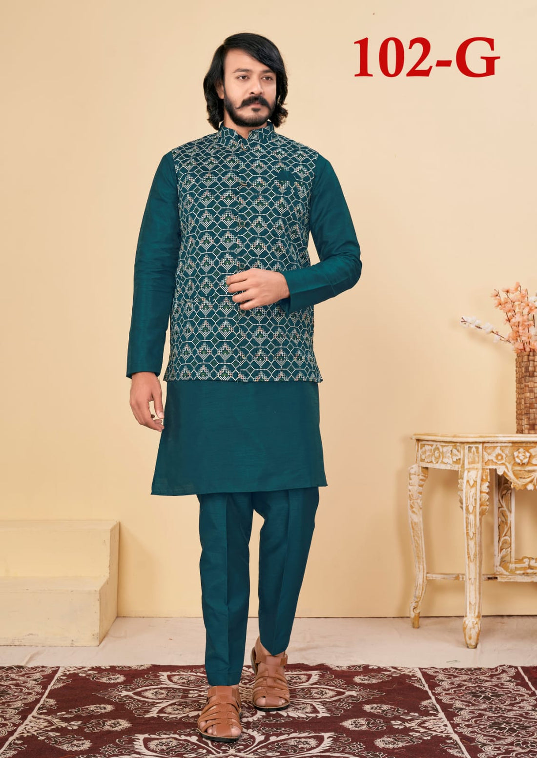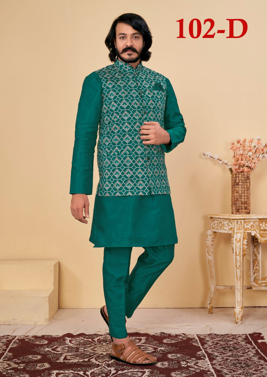 Beautiful Men's Designer Silk Kurta Payjama With Koti Jacket