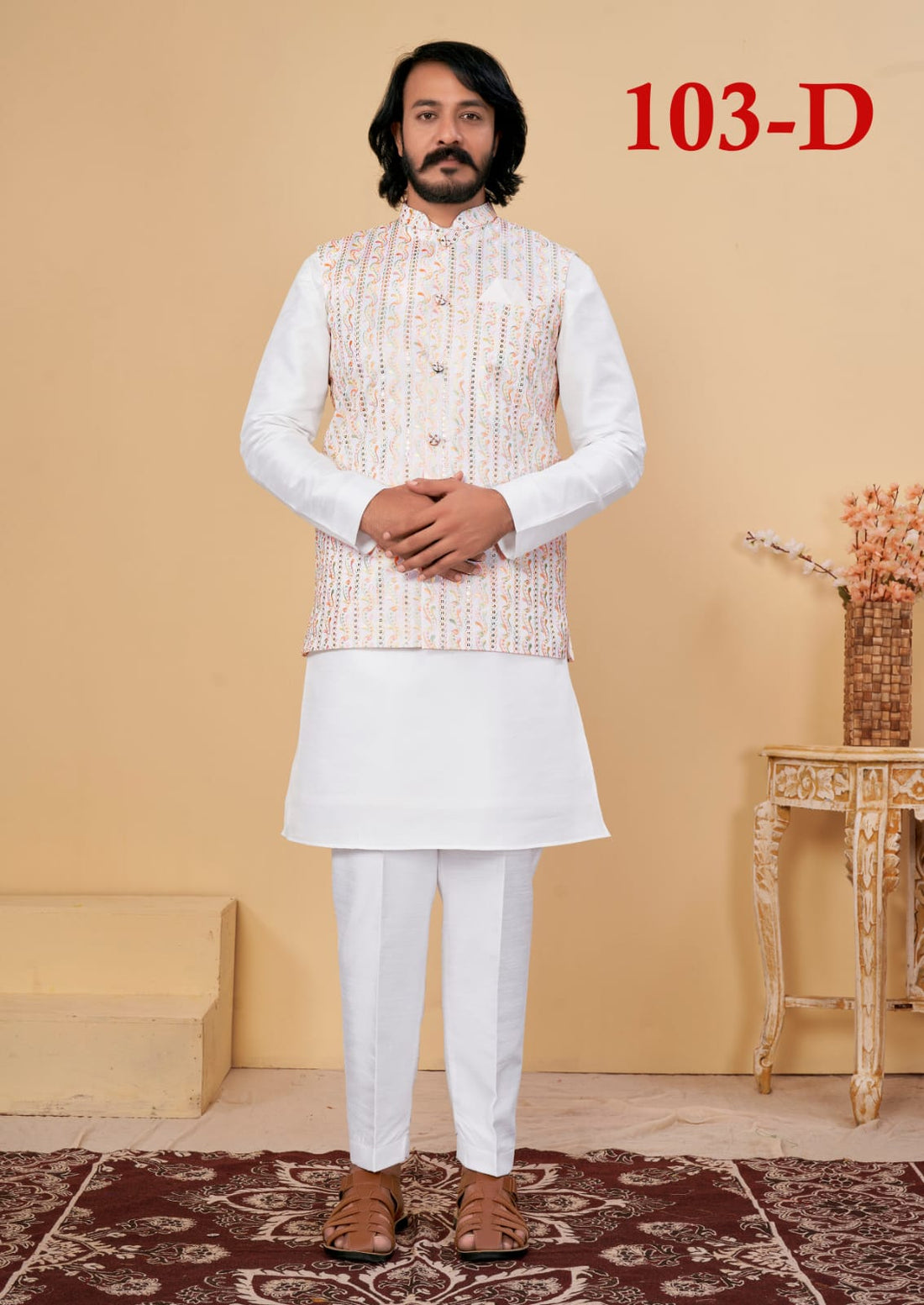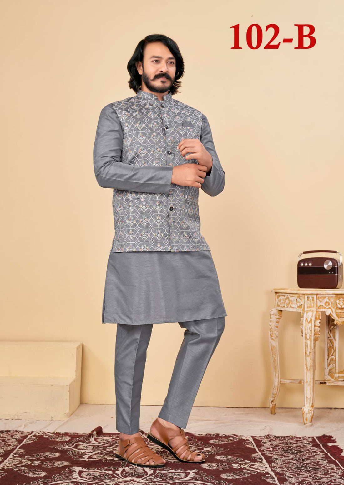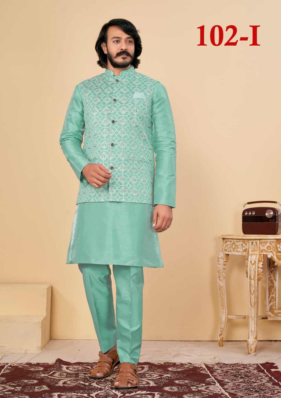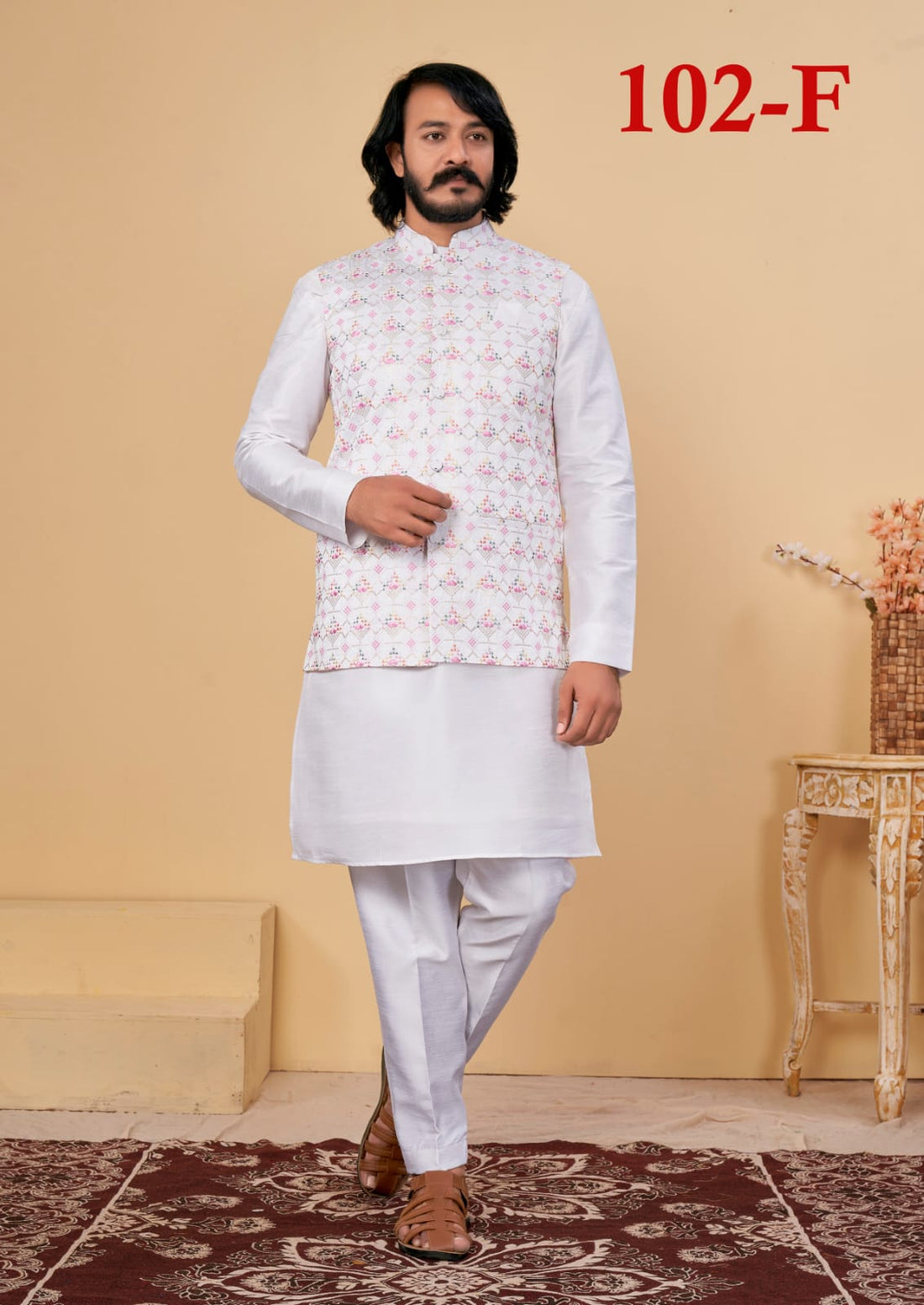 Beautiful Men's Designer Silk Kurta Payjama With Koti Jacket