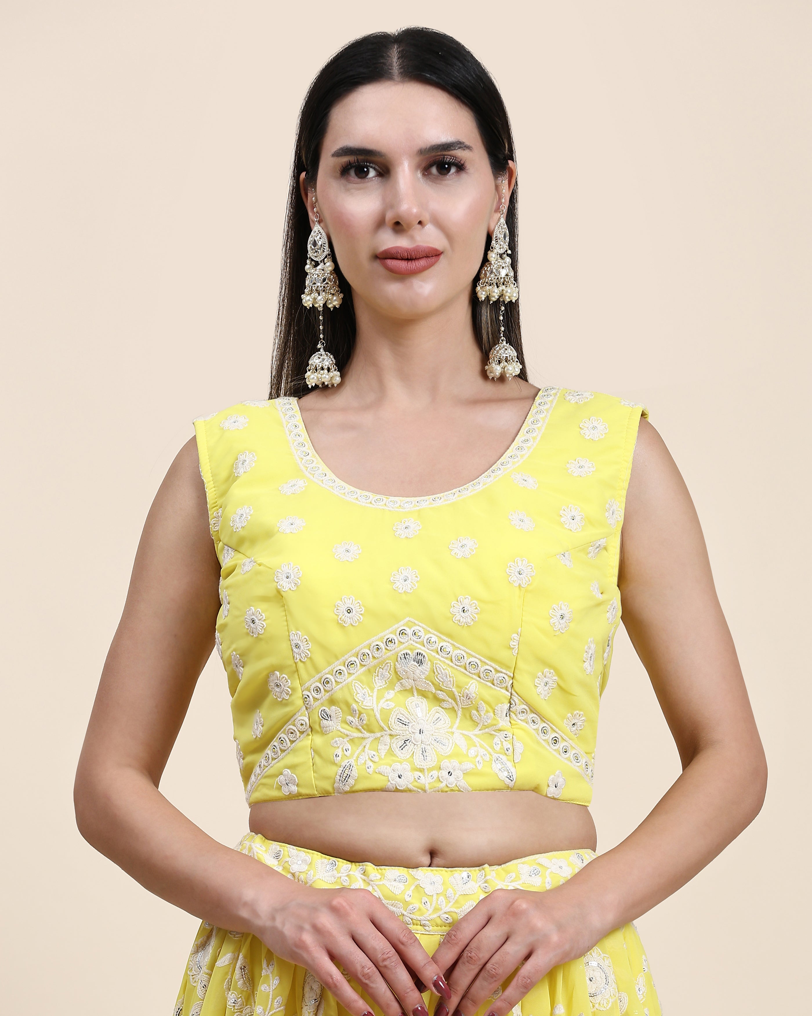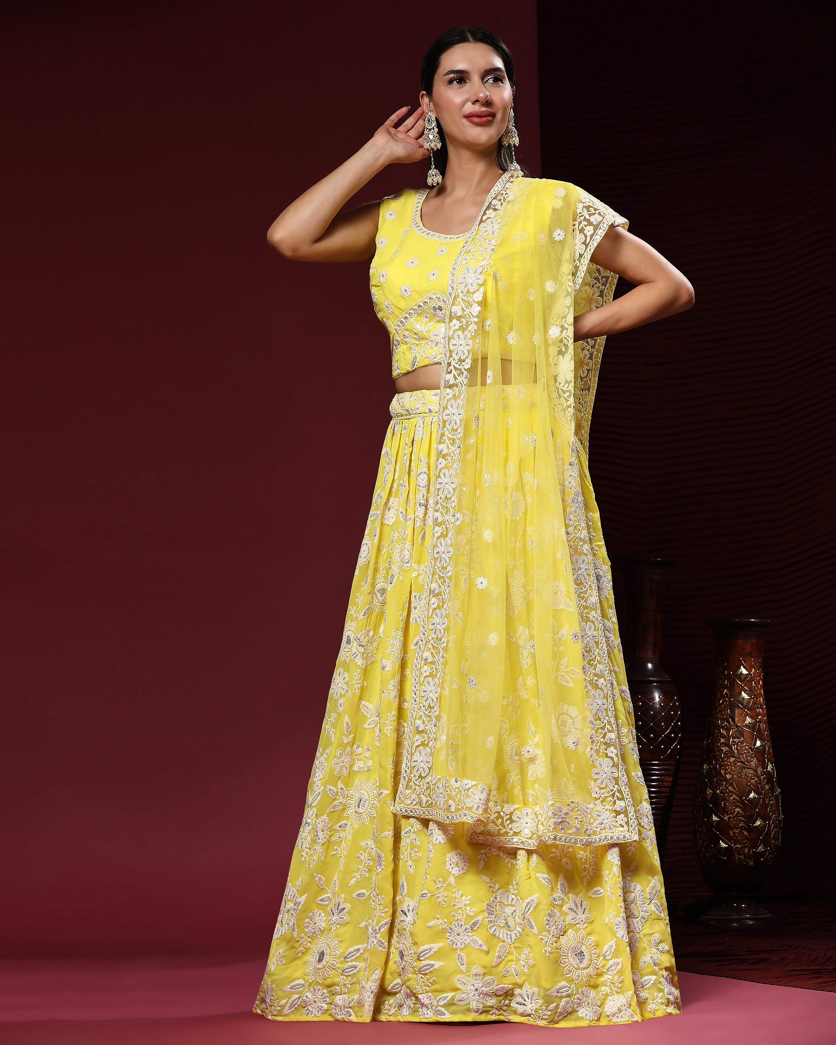 LEHENGA PURE VISCOSE GEORGETTE FABRIC WITH LAKHANVI WORK