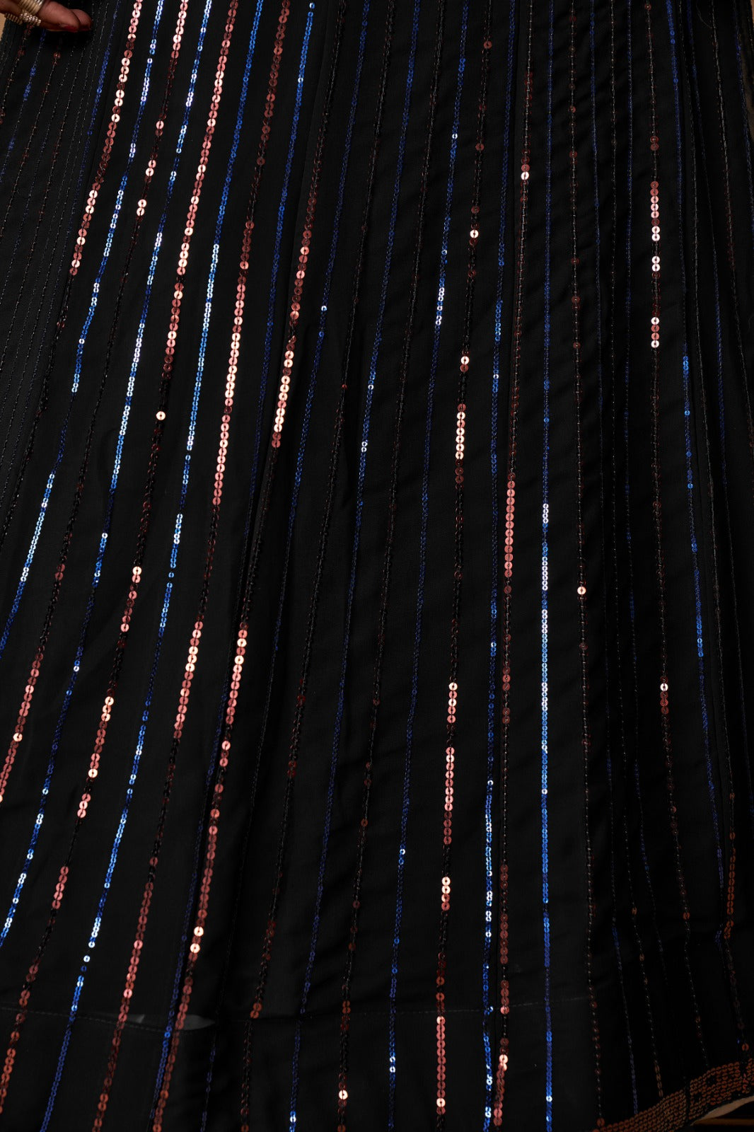 The Singles 195 lehenga is a stylish and sophisticated garment perfect for making a statement at any special event. Crafted from breathable georgette and decorated with shimmery sequins, the semi-stitched lehenga is a stunning choice for formal occasions. The classic black color is sure to elevate any look and make any wearer stand out in the crowd.