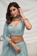 Celebrate your special day in style with our sky blue net lehenga set, designed to accentuate your beauty and grace. Embrace the elegance of this exquisite ensemble and create unforgettable memories. Order now and experience the timeless allure of our bridal collection!