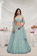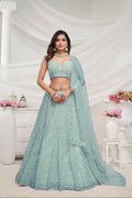 Sky Blue Net Lehenga with Sequin & Cut Dana - Bridal Ensemble