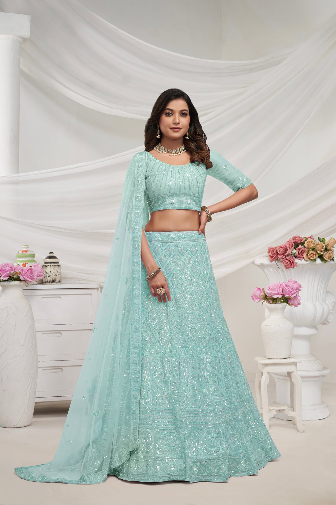 Sky Blue Soft Net Lehenga Choli Set - Diamond Sequin Embroidery