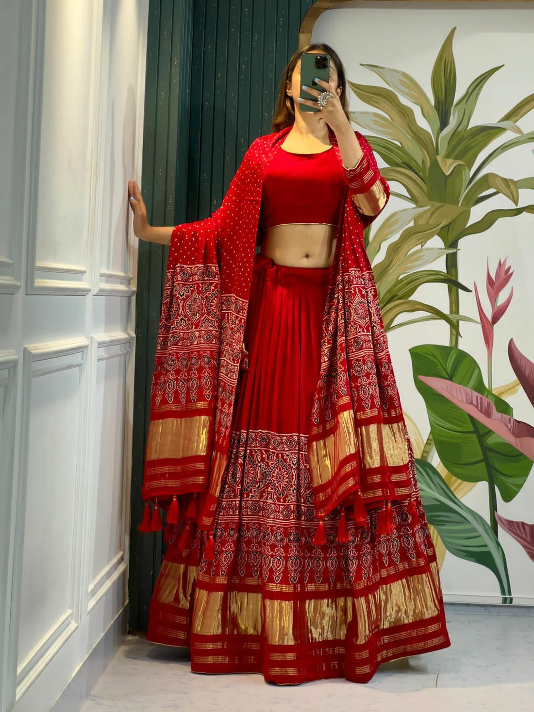 Beautiful Designer Pure Modal Gajji Silk Ajrakh Handblock Print Chaniya Choli