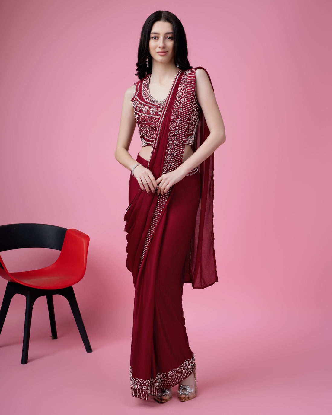 READY TO WEAR SAREE DESIGN NO 101006 BLOUSE IMPORTED CRUSH WITH SEQUIN WORK SAREE IMPORTED...