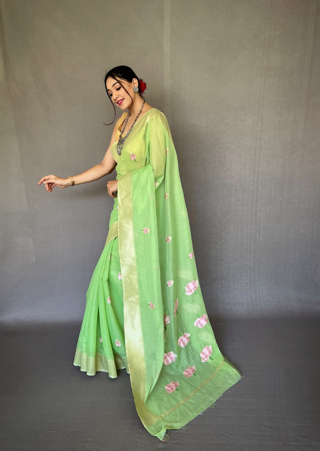 Party Wear Designer Lotus Pure Cotton Linen Saree
