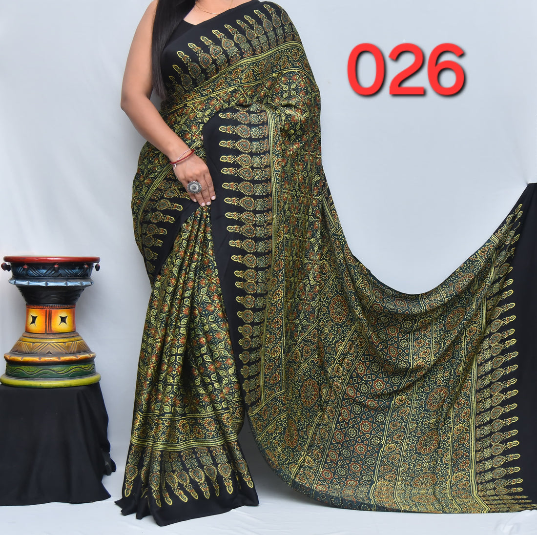 Elg Aajrkh Modal Silk Vegetable hand block print Saree All New Design All New Collections...