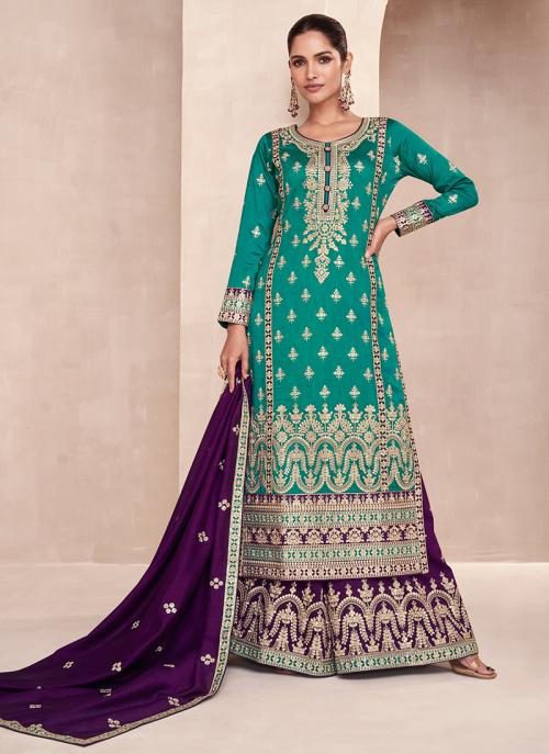 Beautiful Designer Wedding Wear Green Premium Punjabi Plazzo Suit