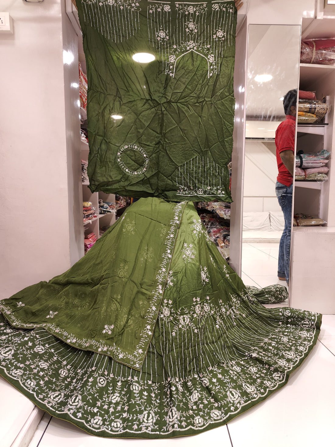 Beautiful Wedding Designer Shibori Batik Pure uppda Lehenga Chunni