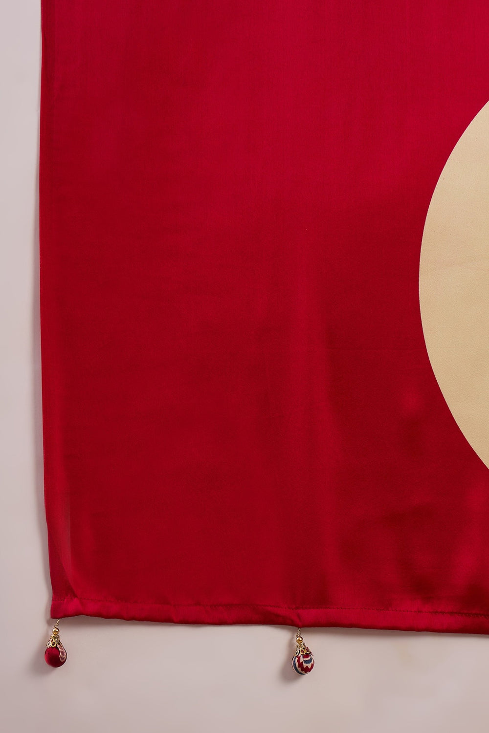 Almond Cream and Red Printed Satin Gaji Silk Saree