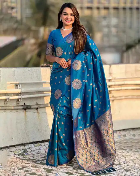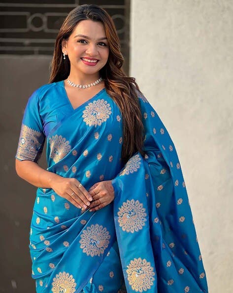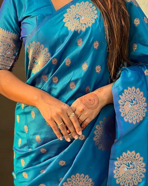 Aqua Pure Soft Munga Silk Handloom Weaving Saree