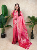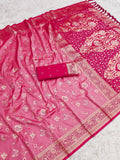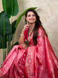 Baby Pink Banarasi Jaal Zari Woven Silk Saree