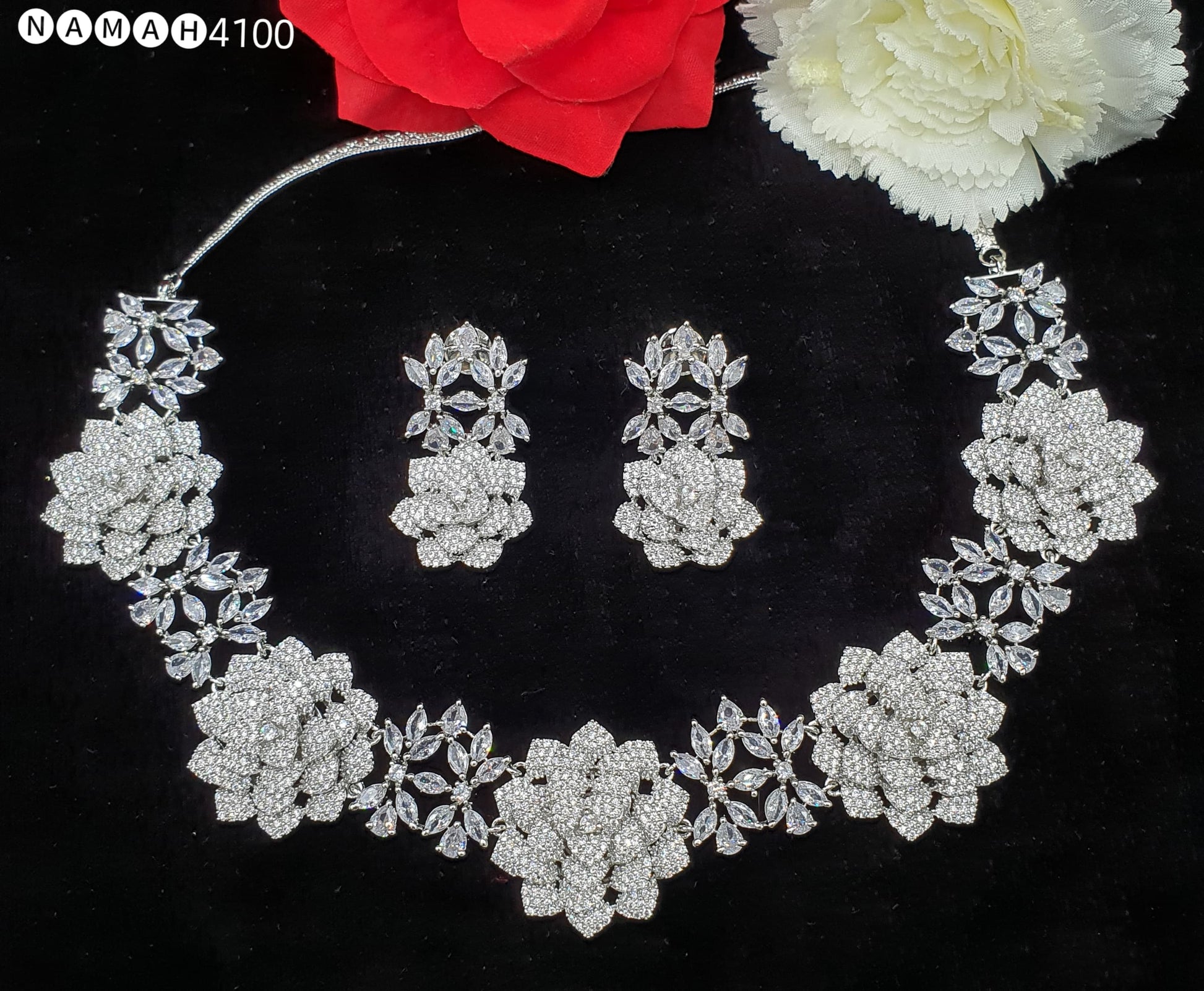 Beautiful American Diamond Antique Stone Necklace with Earrings Jewellery