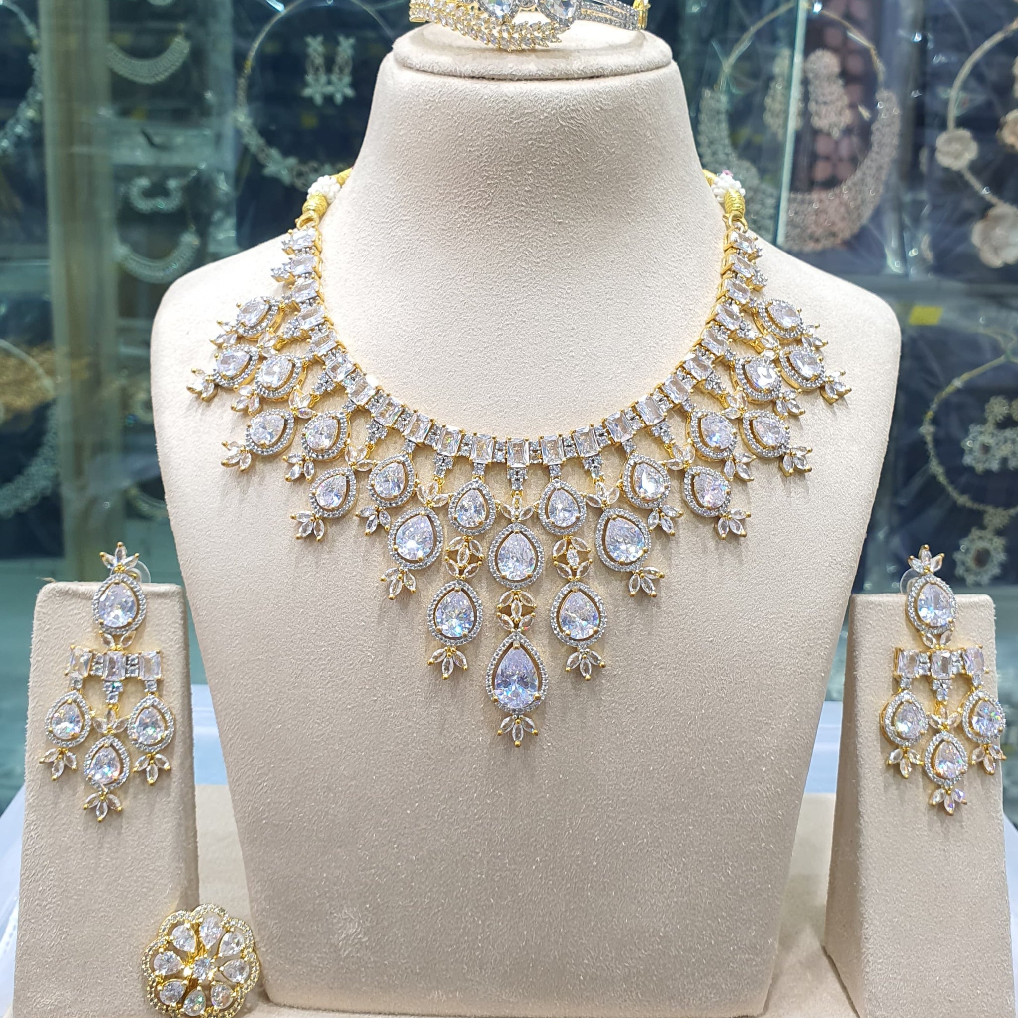 Beautiful American Diamond Antique Stone Necklace with Earrings Jewellery