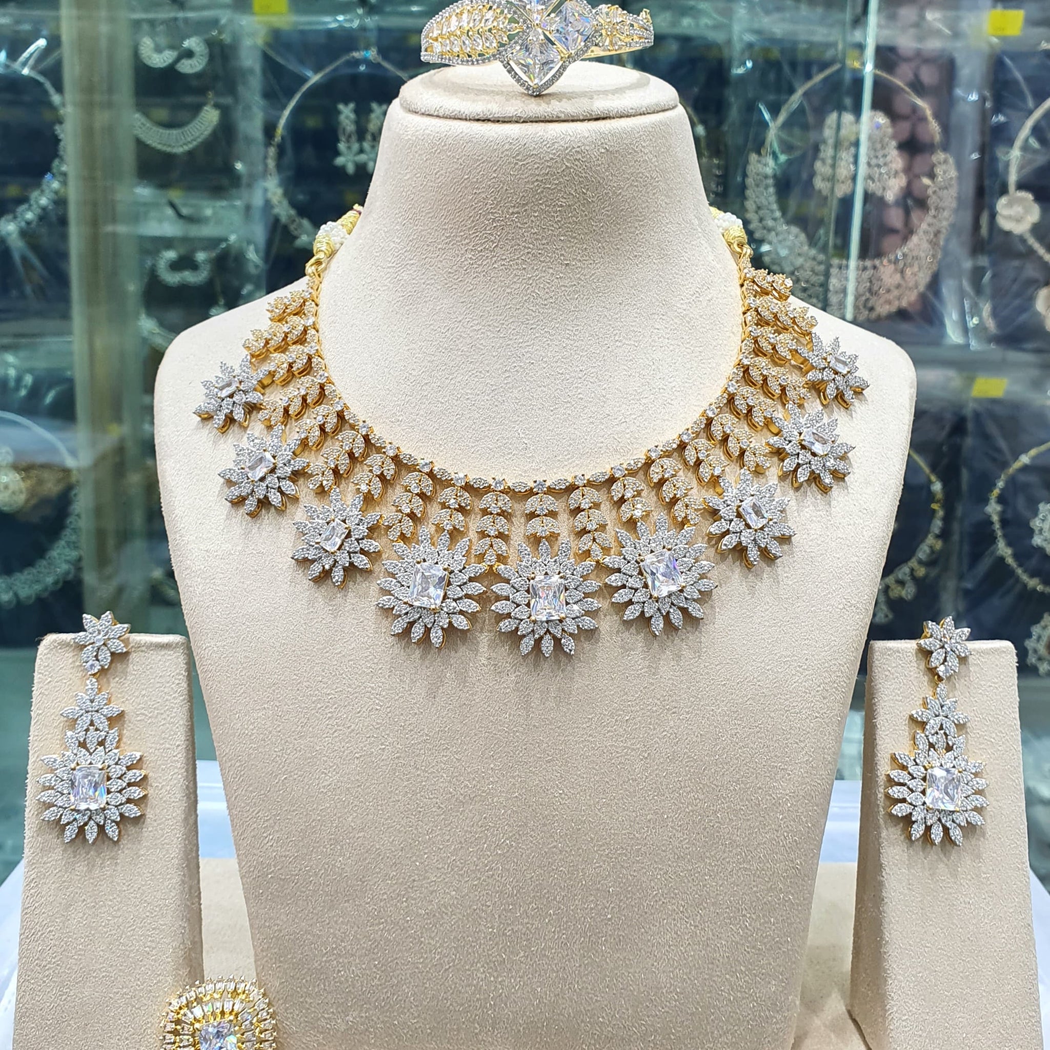 Beautiful American Diamond Antique Stone Necklace with Earrings Jewellery