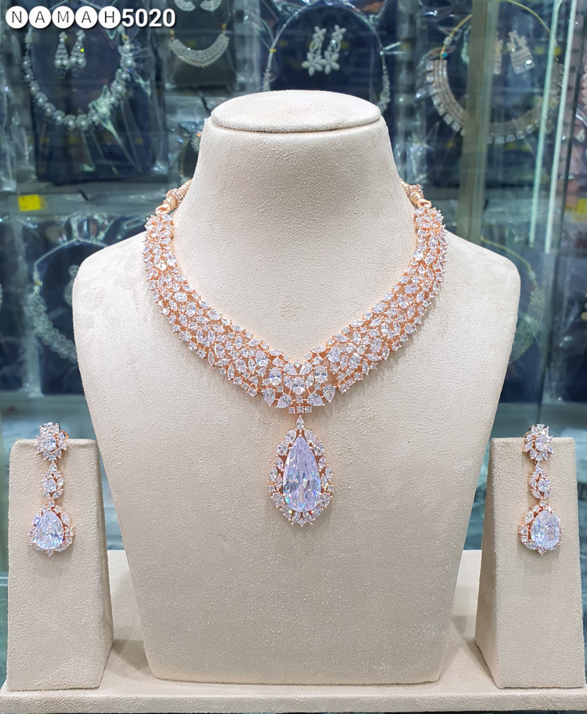 Beautiful American Diamond Antique Stone Necklace with Earrings Jewellery