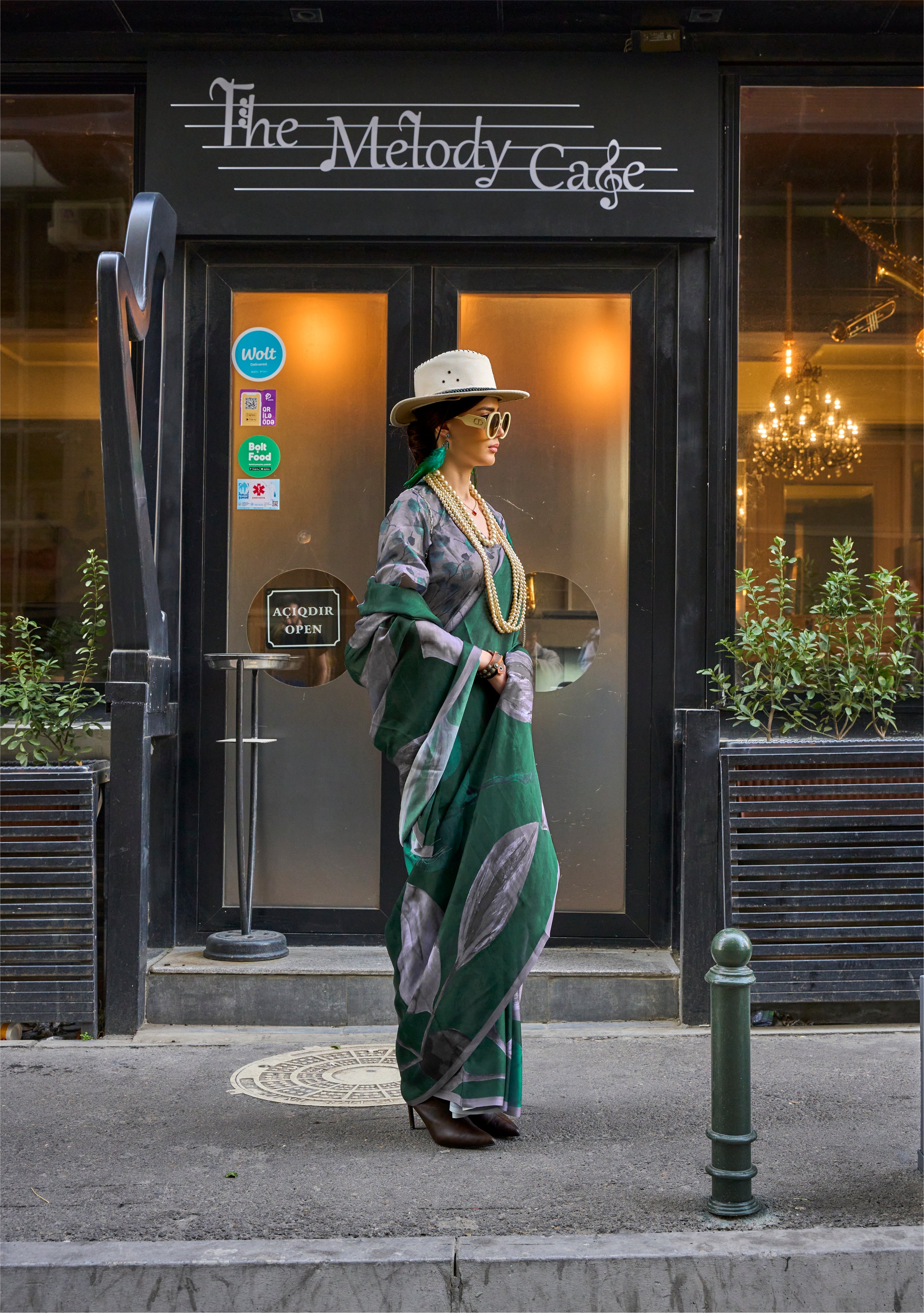 This Satin Georgette Saree Is Combines With The Lustrous Beauty Of Intricate Digital Printing, Resulting In A Stunning And Versatile Piece Of Clothing That Can Grace Any Occasion With Its Sheer Grace And Charm