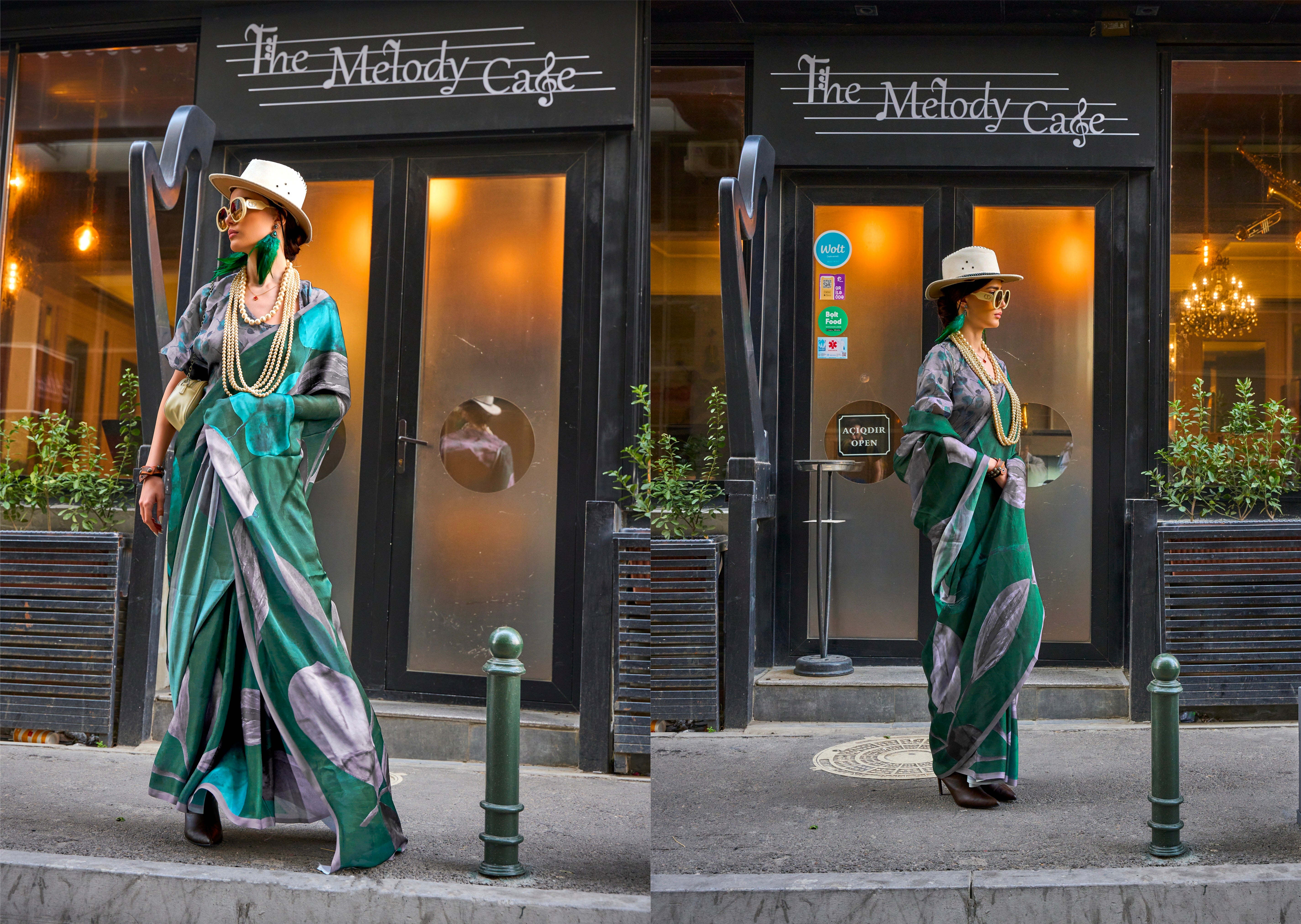 Beautiful Casual Wear Satin Georgette With Digital Print Saree Beautiful Casual Wear Satin Georgette With Digital Print Saree