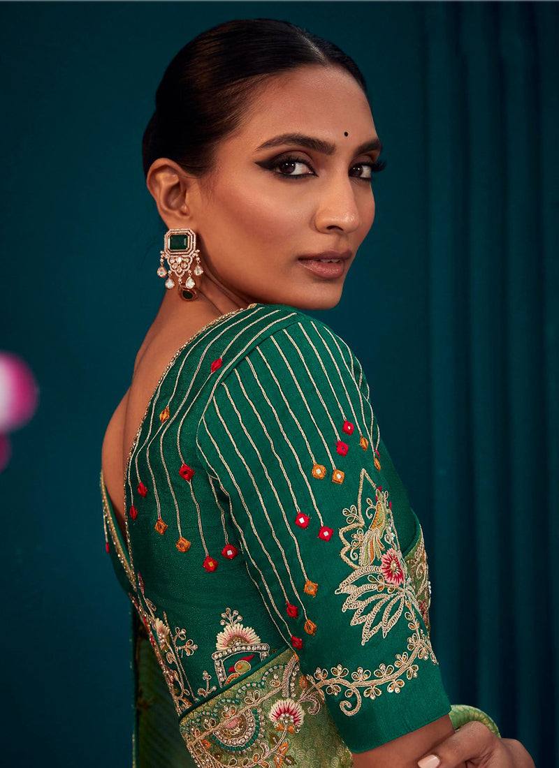 Beautiful Designer Blue Red Banarasi Kanjivaram Wedding Saree