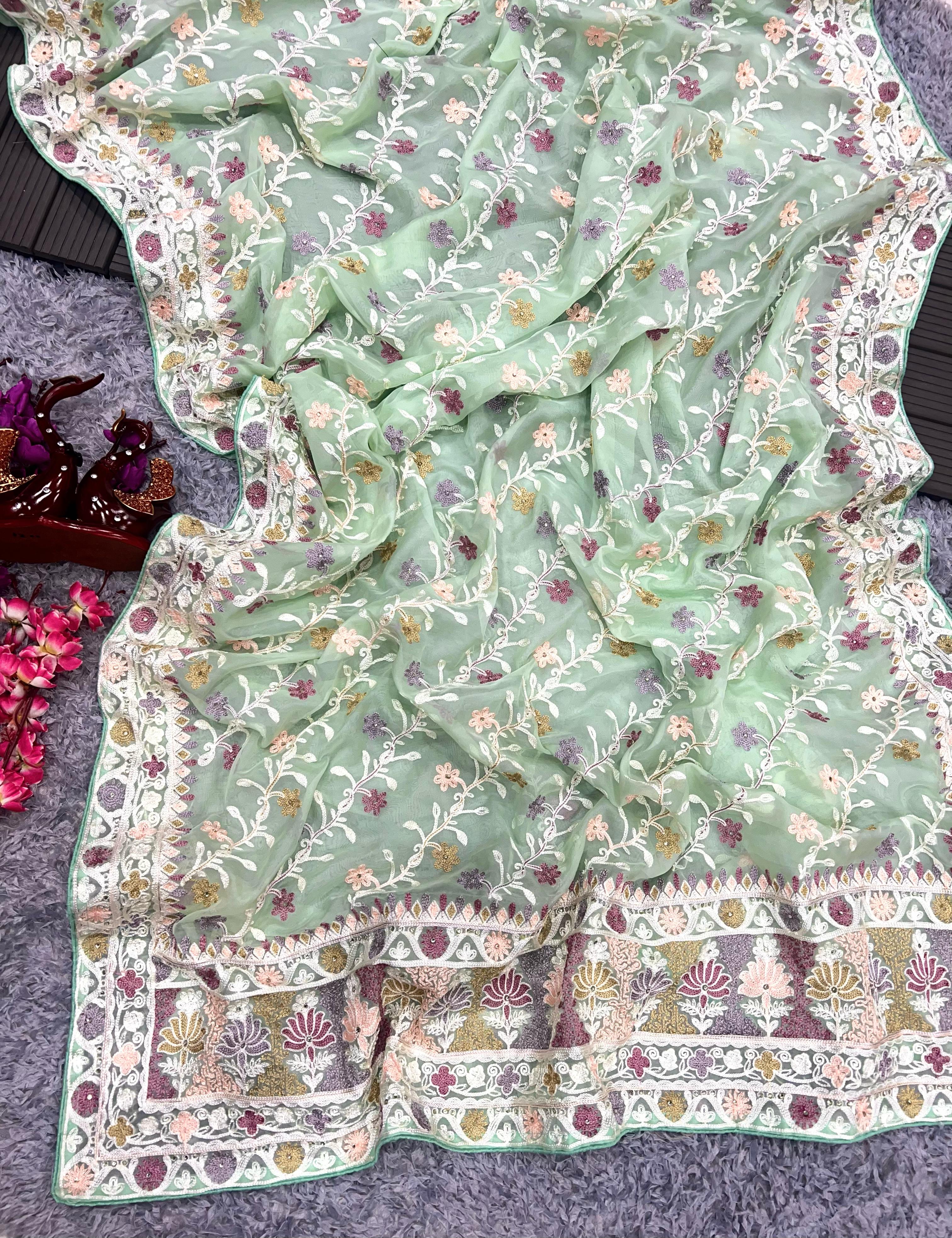 Beautiful Designer Bollywood Style Soft Organza Sequence Saree