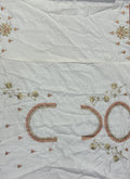 This peach lehenga showcases exquisite embroidery and mirror work on silk, complemented by a soft pink dupatta for a timeless elegance.