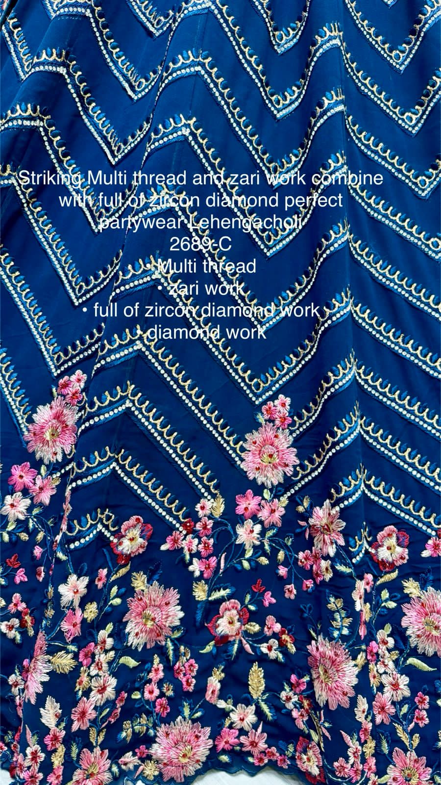 Striking Multi thread and zari work combine with full of zircon diamond perfect partywear Lehengacholi