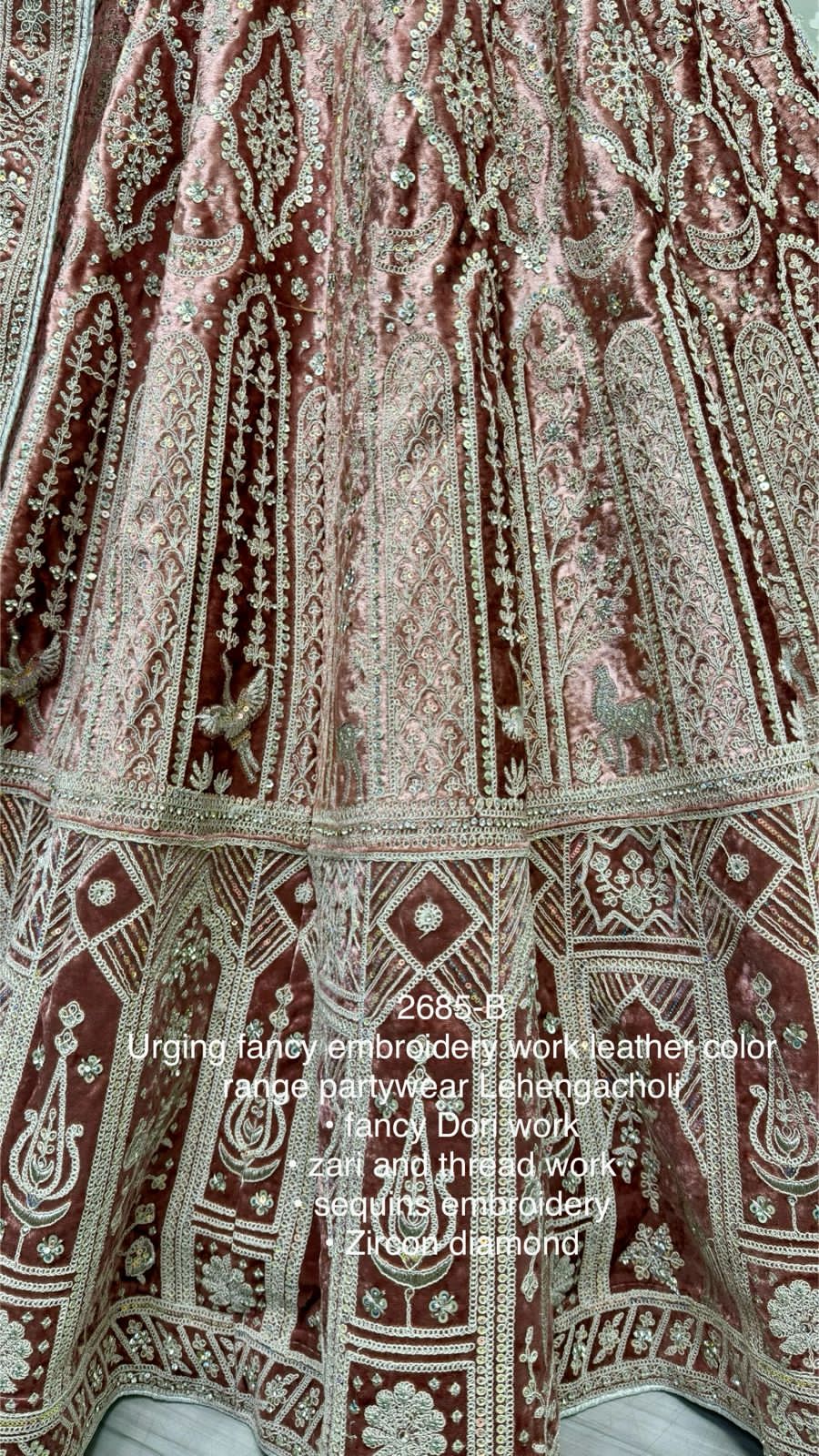 Urging fancy embroidery work leather color range partywear Lehengacholi