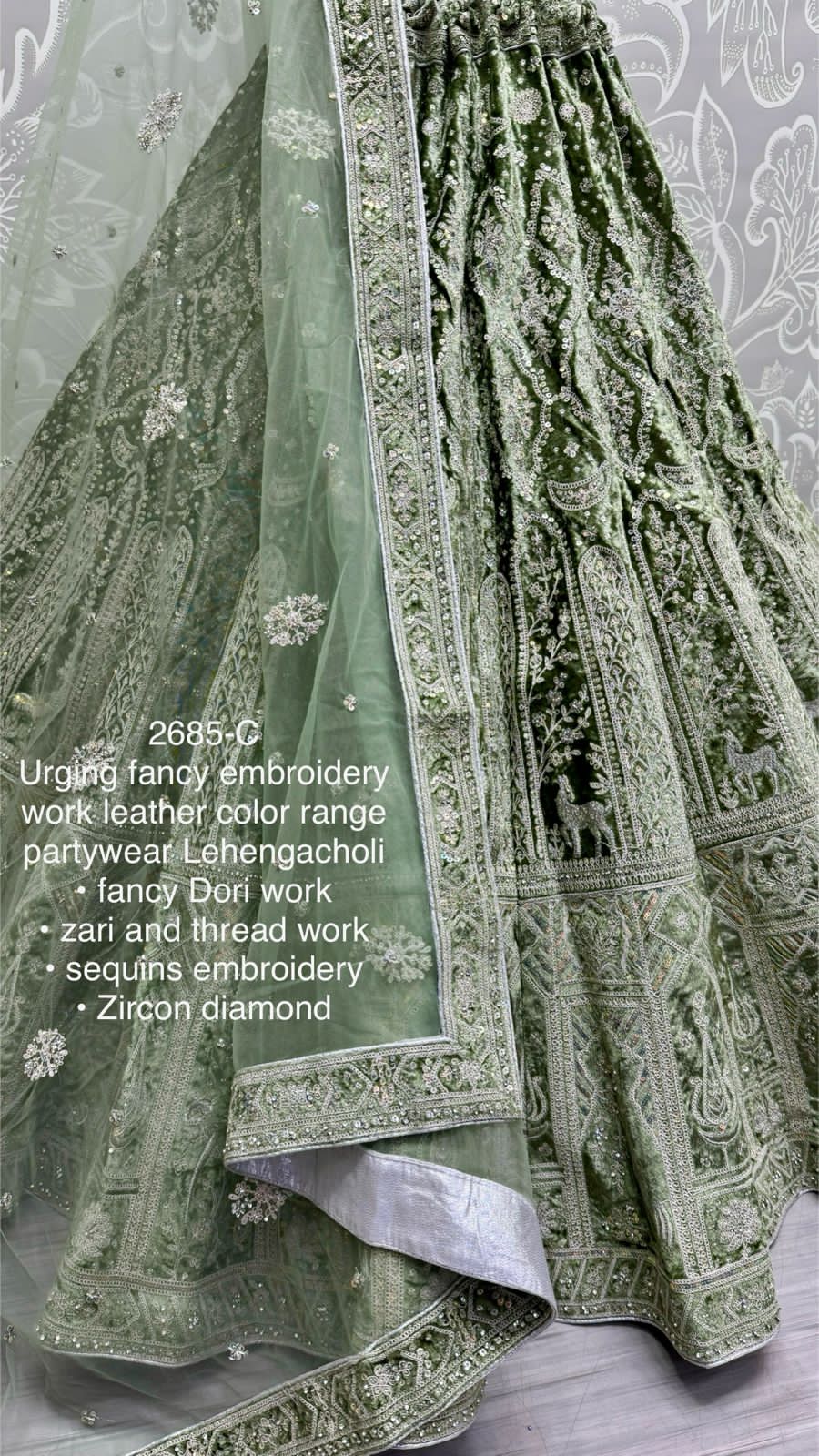 Urging fancy embroidery work leather color range partywear Lehengacholi