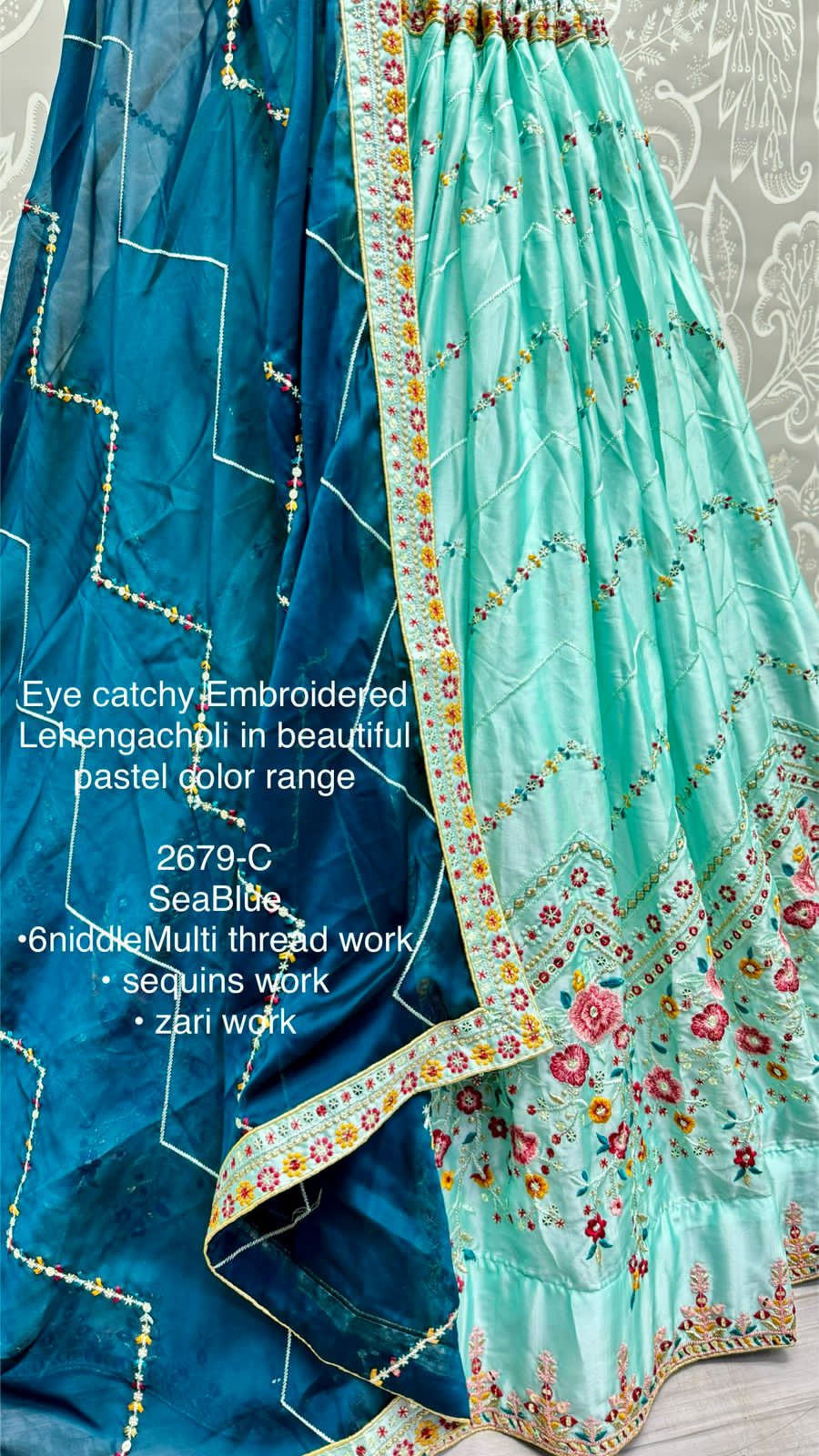 Eye catchy Embroidered Lehengacholi in beautiful pastel color range