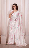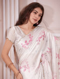 The Dazzling Diva Clad In This Satin Georgette Designer Casual Saree With Exquisite Designs And Patterns. The Digital Print And Swarovski Work On Attire Personifies The Entire Appearance.